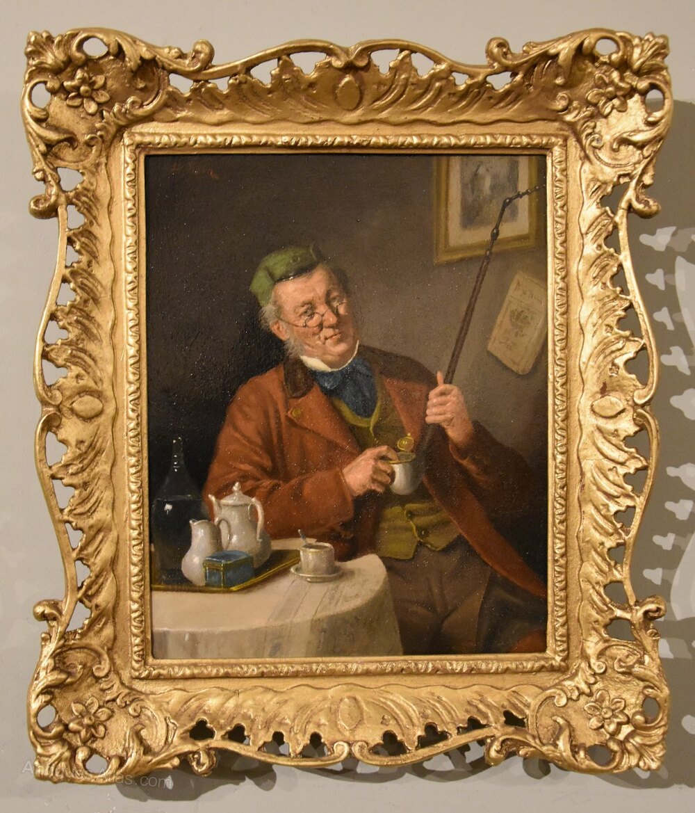 Oil Painting pair by Hermann Armin Kern "The trumpeter and the Smoker" 1838 - 1912 Popular Austrian painter of figurative scenes court painter at the Court of France Joseph the first in Vienna. Studied in Prague, a talented musician and friends of France Listz. Both oil on panel signed provenance Stacey Marks. SignedDimensions unframed 12 x 10