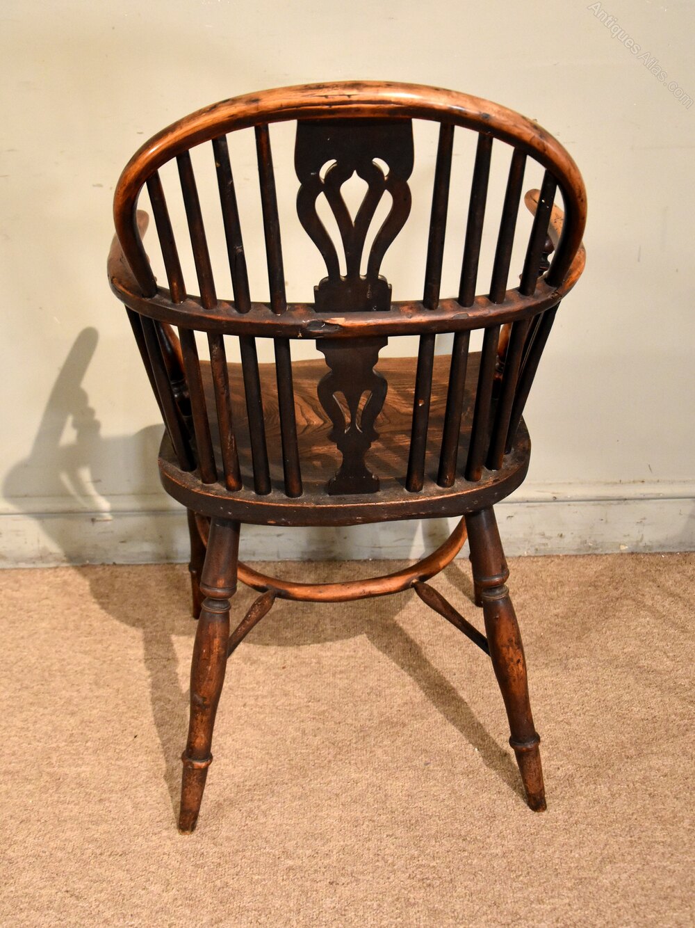 A superb example of an early 19th century yew wood Windsor armchair constructed from fabulous timbers with crinoline stretcher. Similar chair in stock, see last pictureHeight 37" 94cm