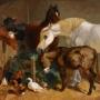 Oil Painting by Henry Charles Woollett "A Stable.Interior" .