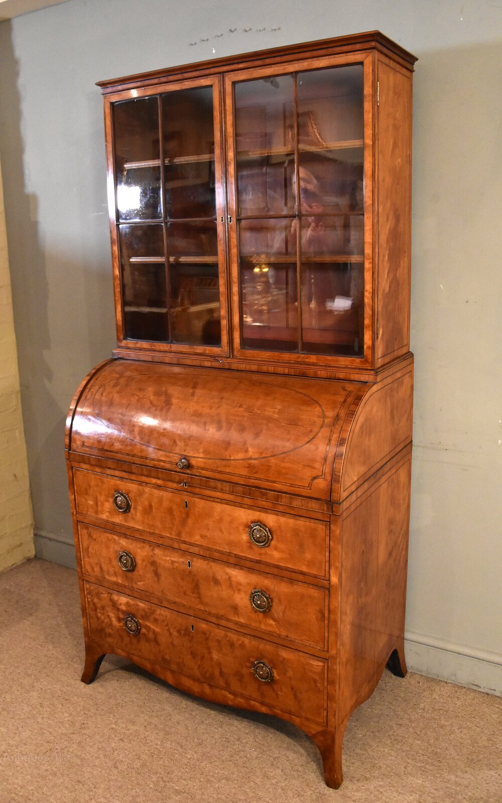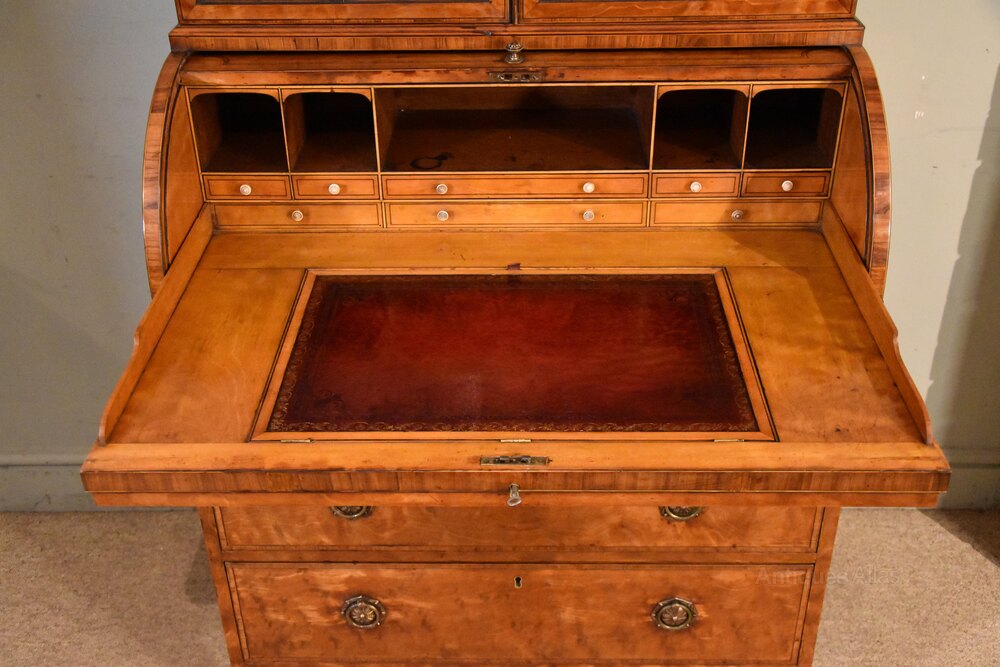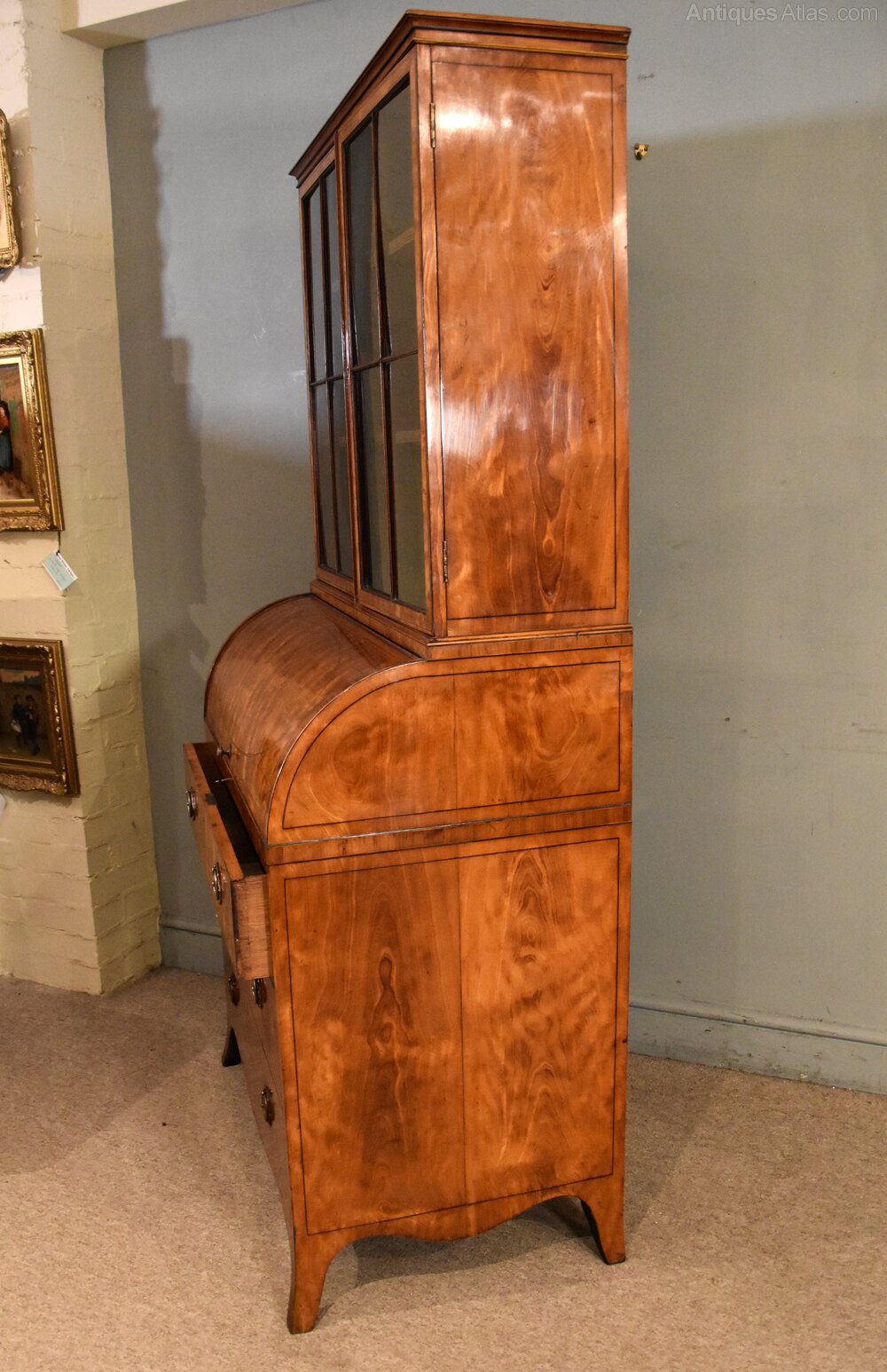 George III Satinwood cylinder secretaire cabinet
