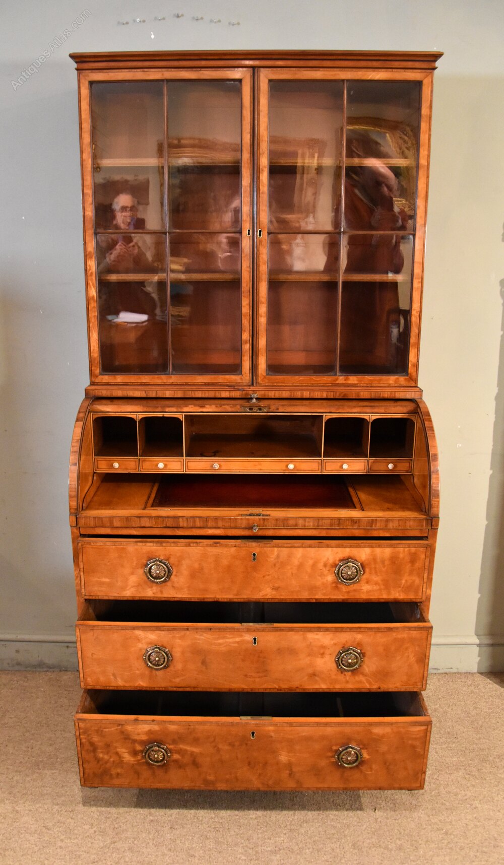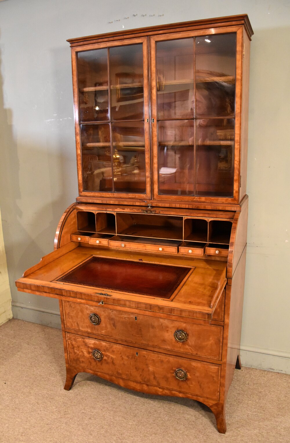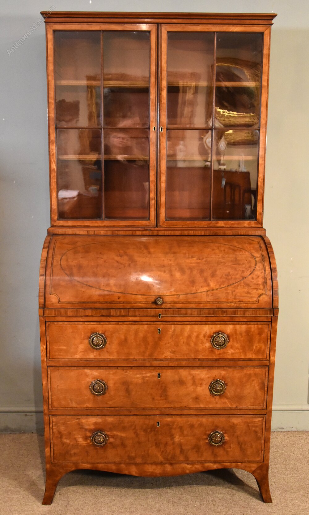 George III Satinwood cylinder secretaire cabinet