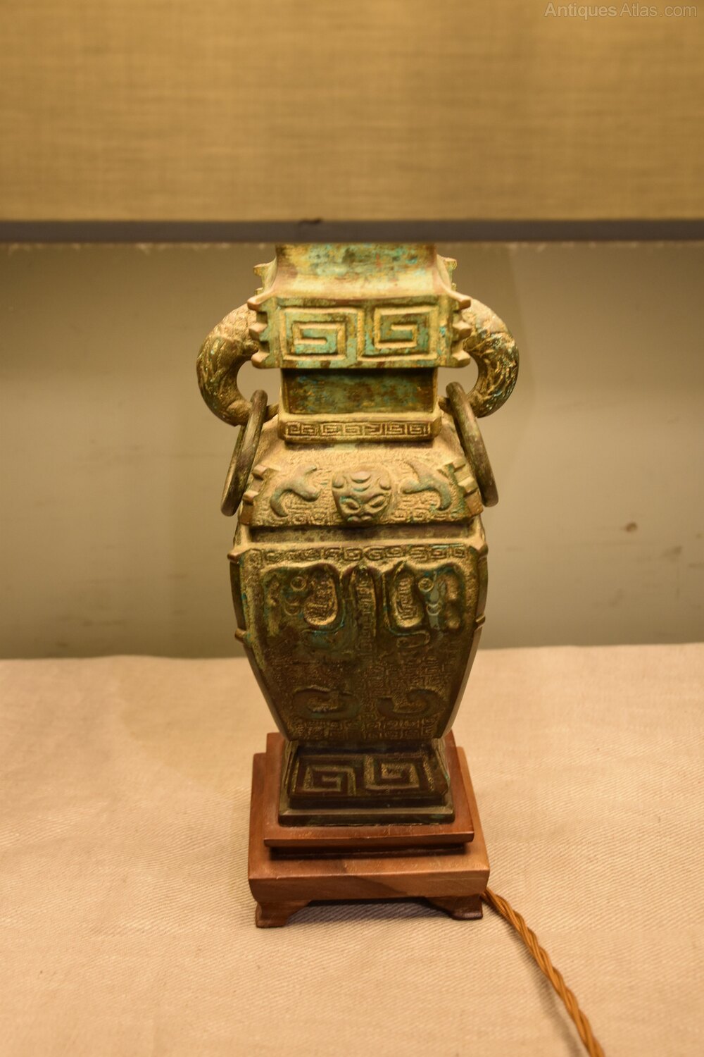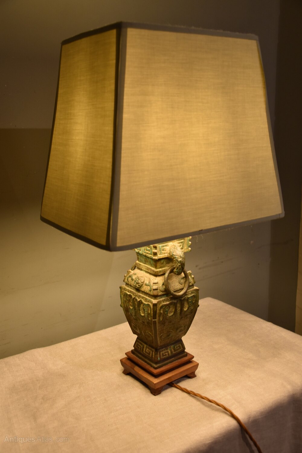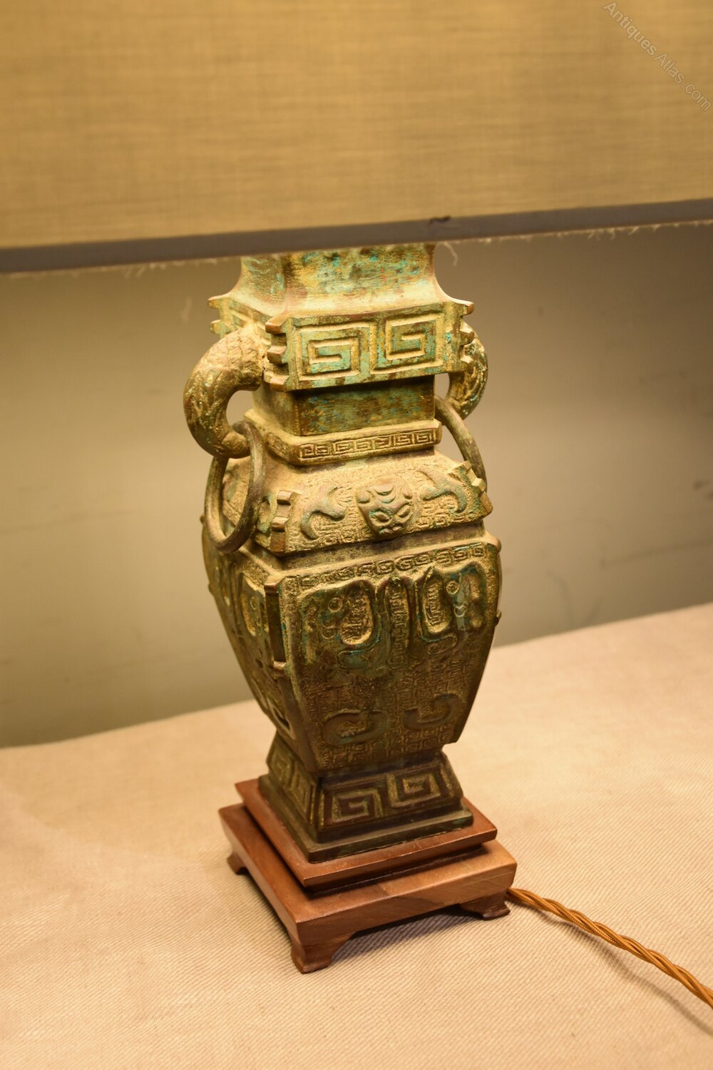 Late 19th century chinese bronze vase converted into a lampLamp Height including lampshade 64cm