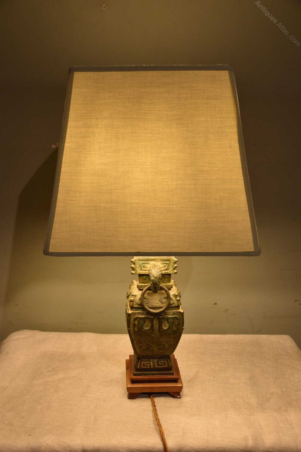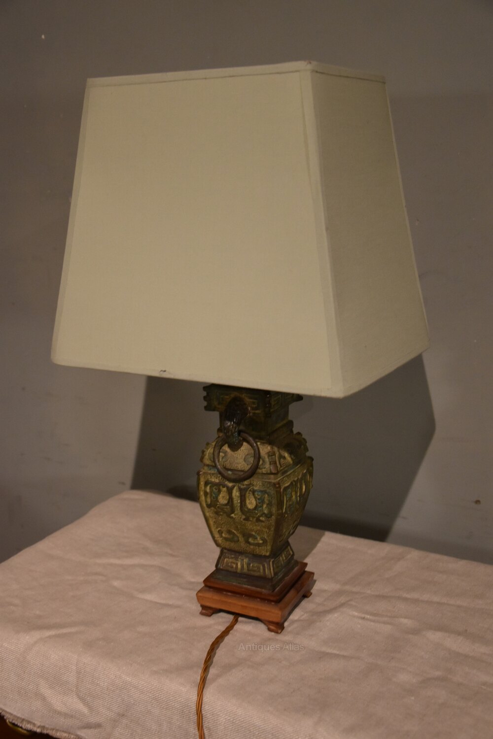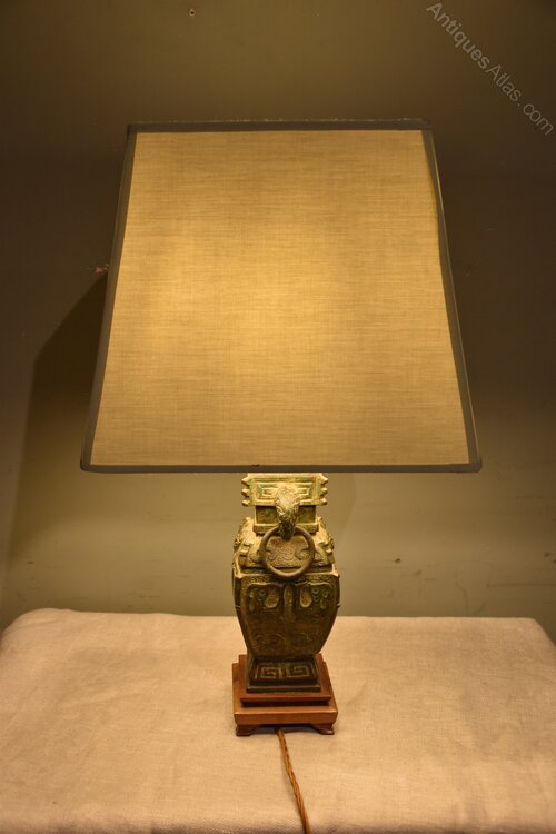 Late 19th century chinese bronze vase converted into a lampLamp Height including lampshade 64cm
