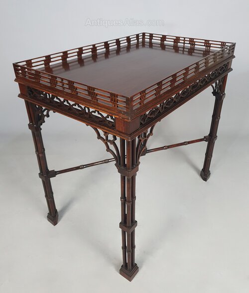 The hand carved detailing to the table is superb with a pierced fretwork gallery, a wide open fretwork carved band of Gothic motifs to the apron and intricately carved large beautiful Gothic spandrels.