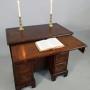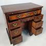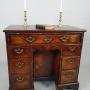 Set on original bracket feet and of small well balanced proportions, the desk is entirely comfortable and usable with a long and slender frieze drawer over two banks of three graduated drawers. With a further shallow ‘secret’ drawer with attractively shaped apron above the kneehole cupboard door which has a lovely Gothic arched moulded panel.