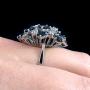 A stunning white gold ring set with 12 wonderful and rare oval ‘fancy-coloured’ sapphires and 15 single cut diamonds in a spray setting. Each of the sapphires changes colour according to the angle of the light, from a sea green to a cornflower blue.Total sapphire carat weight 4.15ct and total diamond weight 0.56ct. The sapphires and diamonds are natural, the diamonds clear white and full of fire, the sapphires with a rare aqua blue colour.