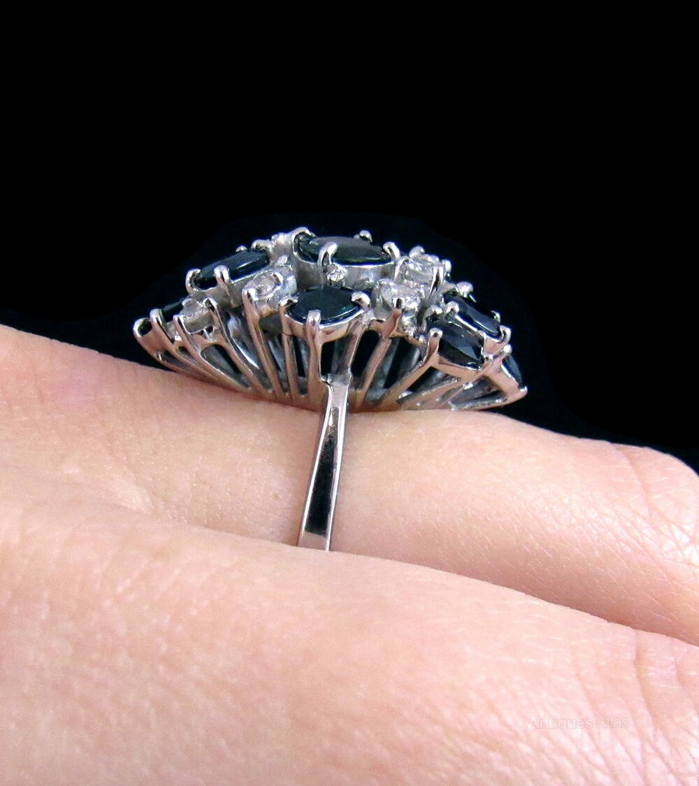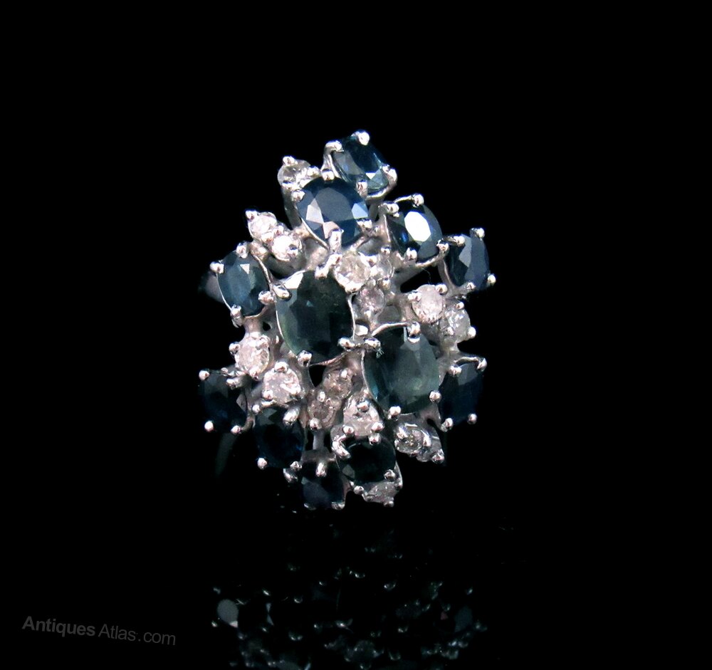 Art Deco White Gold Sapphire and Diamond Ring