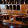 The upper case doors with crossbanding and moulded bead frames to the plates, open with original hinges and locking mechanism to reveal a fully fitted interior of small featherbanded drawers with original handles and tall canopied pigeon holes.
