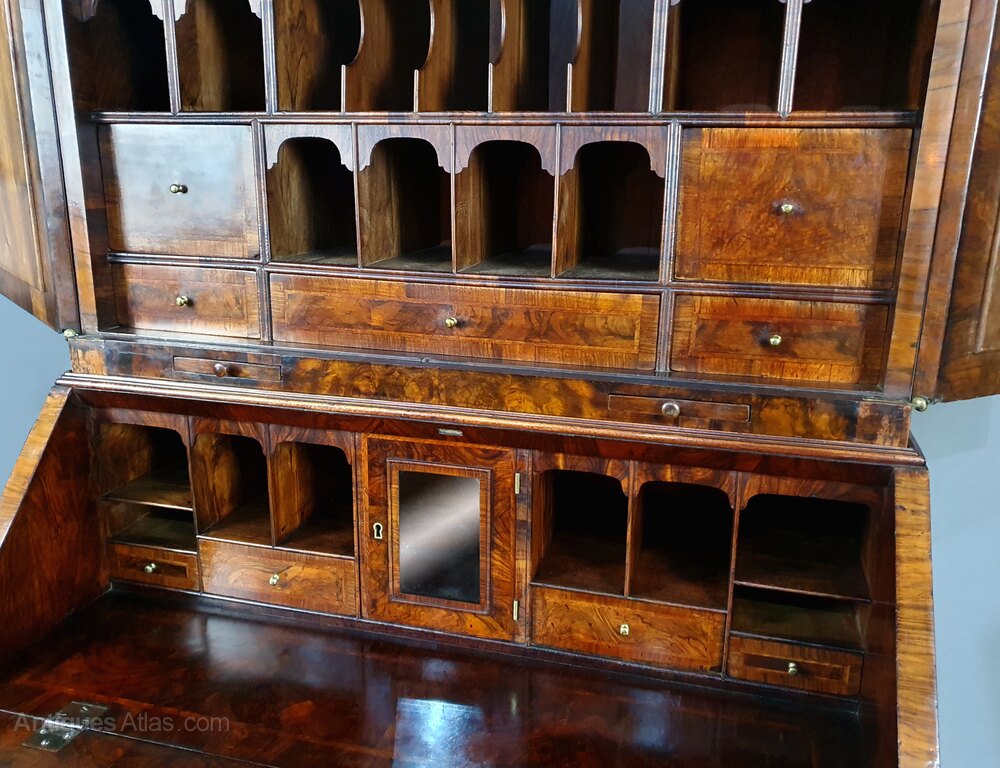 Fine Queen Anne Burr Walnut Bureau Bookcase