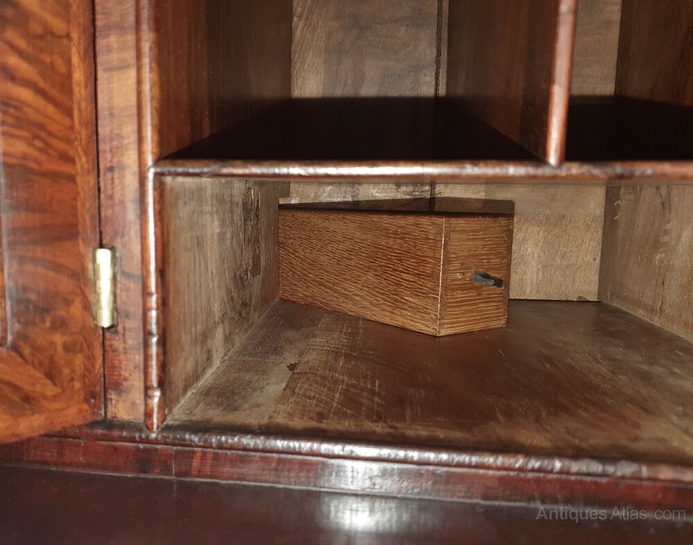 All of the inner and principal drawers are oak lined with slender oak wainscot boards and very fine dovetailed joints.