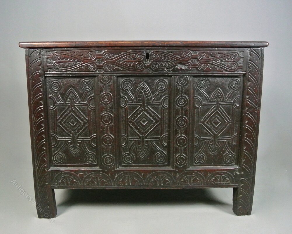 This is a really good coffer with a wonderful colour and skin, very fine carving, great proportions and in great original condition.