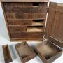 A beautiful early Welsh spice cupboard. The oak lined drawers of graduated size retaining original iron ring handles on split pin fixings.These boxes housed spices such as cinnamon, cloves, black pepper and nutmeg. Some spices were as expensive per ounce as gold and so highly prized and kept under lock and key. There is still a faint aroma of herbs and spices in some of the drawers.