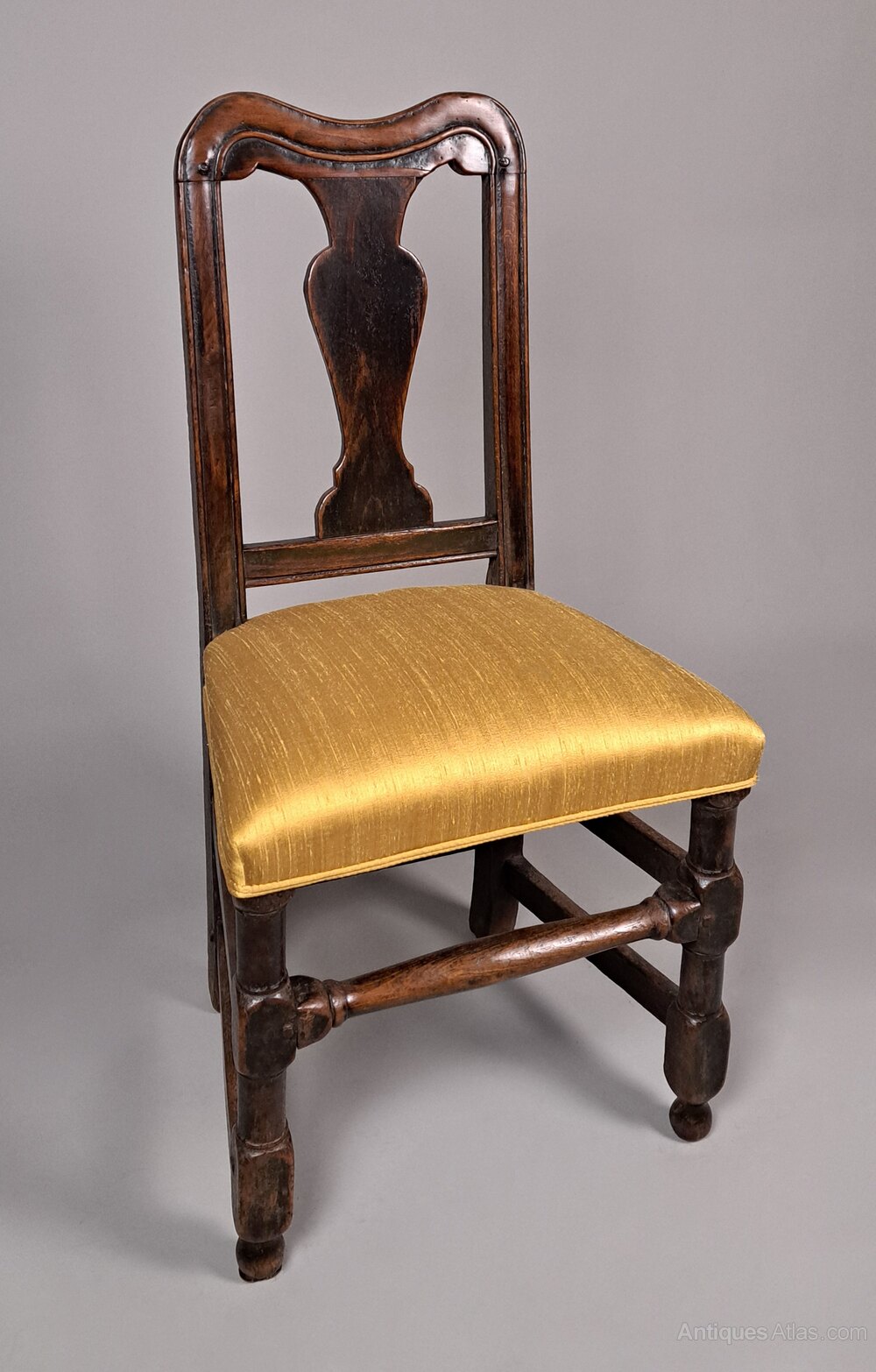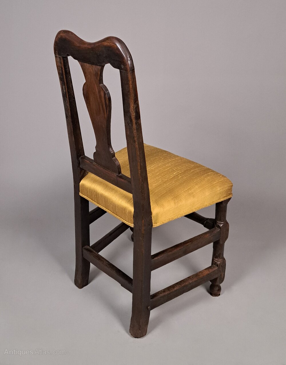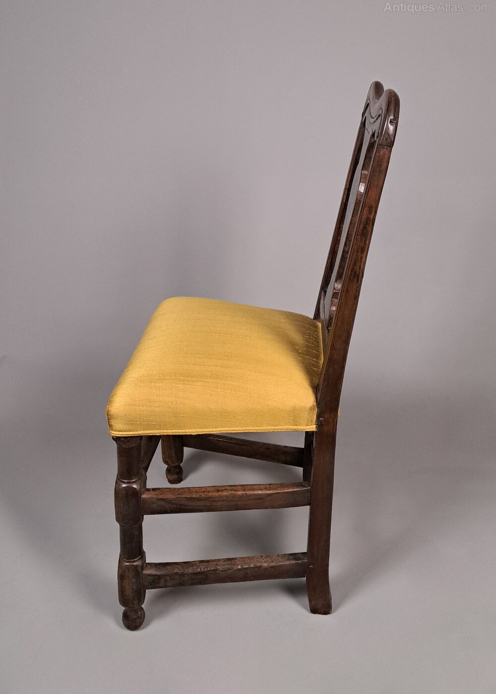 With fantastic colour and rich natural patina, this English walnut and oak back stool was made in c. 1660 by skilled hands and it retains all of the original timbers and original pegs.Beautifully shaped and turned stretchers with squared knuckles to the front.