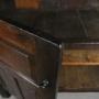 It is unusual to find a press cupboard that has secret drawers or compartments and this example has a particularly charming mechanism. The central panel which is carved with the initials and dates can be unlocked and then slid to reveal a set of shelves. It is ingenious and I’ve not seen this mechanism before. The only clue to it is the graduated shallow groove beneath the date which has been made by 300 years of sliding this panel past an original hand forged nail which has gradually created the date underlining now seen.