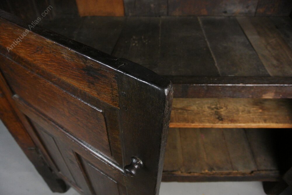 The colour is beautiful and the patination is exceptional and with original timbers throughout other than one late 18th century replaced backboard. Peg jointed though out and retaining most of the original iron and riveted hinges to the doors, the others are very early hand forged replacements.