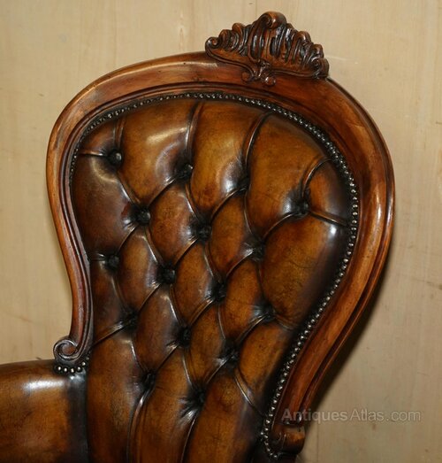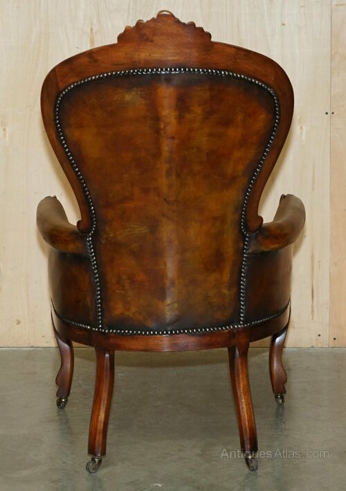The chair has been fully restored to include being hand dyed this lovely deep cigar brown colour, the hide has natural imperfections and marks from honest use and fair ware, it looks every bit of its 140+ years old