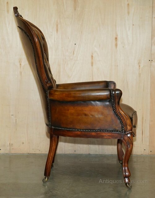 We are delighted to offer for sale this absolutely stunning, Show Framed Victorian fully restored brown Leather, Mahogany Library reading armchair with Chesterfield tuftingPlease note the delivery fee listed is just a guide, it covers within the M25 only for the UK and local Europe only for international, if you would like an accurate quote, please send me your postcode and I’ll provide you with the exact price.