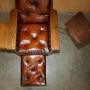 A very good looking and well made, fully restored English oak and leather library reading armchair. The piece has been fully restored as mentioned, it has all new upholstery, the cushions have been custom made to fit, they have Thomas Chippendale style floating buttons which really sets them off from the normal fabric upholstery. The leather hide comes from Italy and is fully aniline leather, after its upholstered the nest stage of the process is to be hand dyed six times, antiqued, sealed, waxed down and polished, the internals are all feather filled with a fiber core for stability