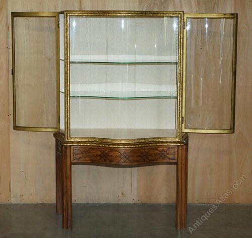 We are delighted to offer for sale this absolutely exquisite and very rare, Thomas Chippendale carved, gold gilt oversized display cabinet with unique, serpentine fronted glazed front panel and side doors with locksPlease note the delivery fee listed is just a guide, it covers within the M25 only for the UK and local Europe only for international, if you would like an accurate quote, please send me your postcode and I’ll provide you with the exact price.