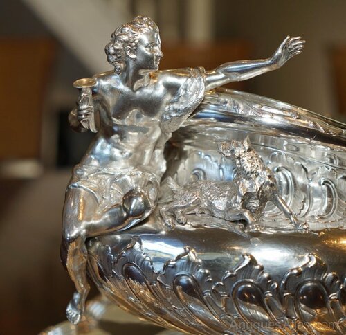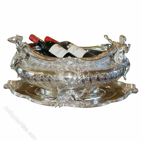 we are delighted to offer for sale this Important, Museum quality, Solid Silver Paris made Wine or Champagne cistern by Emile Hugo after a design by Auguste Nicolas Cain, Circa 1870, complete with the Armorial crest Coat of Arms for Alexandre-Marie-Sébastien de Plœuc, (1815 - 1887)Where to begin! I have never seen a more stunning example of a solid silver wine or champagne cistern, this is a tour de force in every sense, I will include a full description below but the headlines are that it is 14,741 grams, 473.95 ounces, 14.7 kgs of solid silver that is graded above Sterling, the piece comes with a letter dated 13th March 2025 from the London assay office stating the silver content is as follows