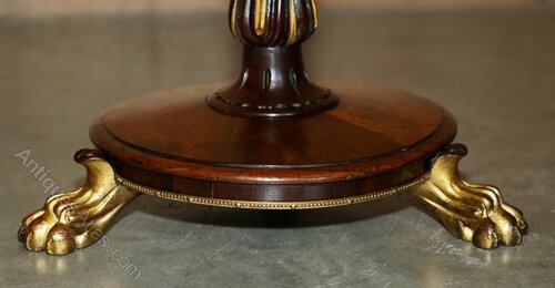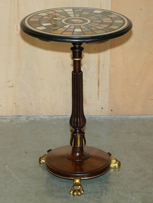 These tables are exquisite, they are gallery ready and show stopping beautiful, my intention was to use them at home but we simply don't have space. The frames are circa 1810-1820, right in the Regency era, they are Rosewood with Ormolu detailing and Gold Gilt finish to the hand carved feet, the tops are Italian Pietra Dura Specimen marble and are super collectable