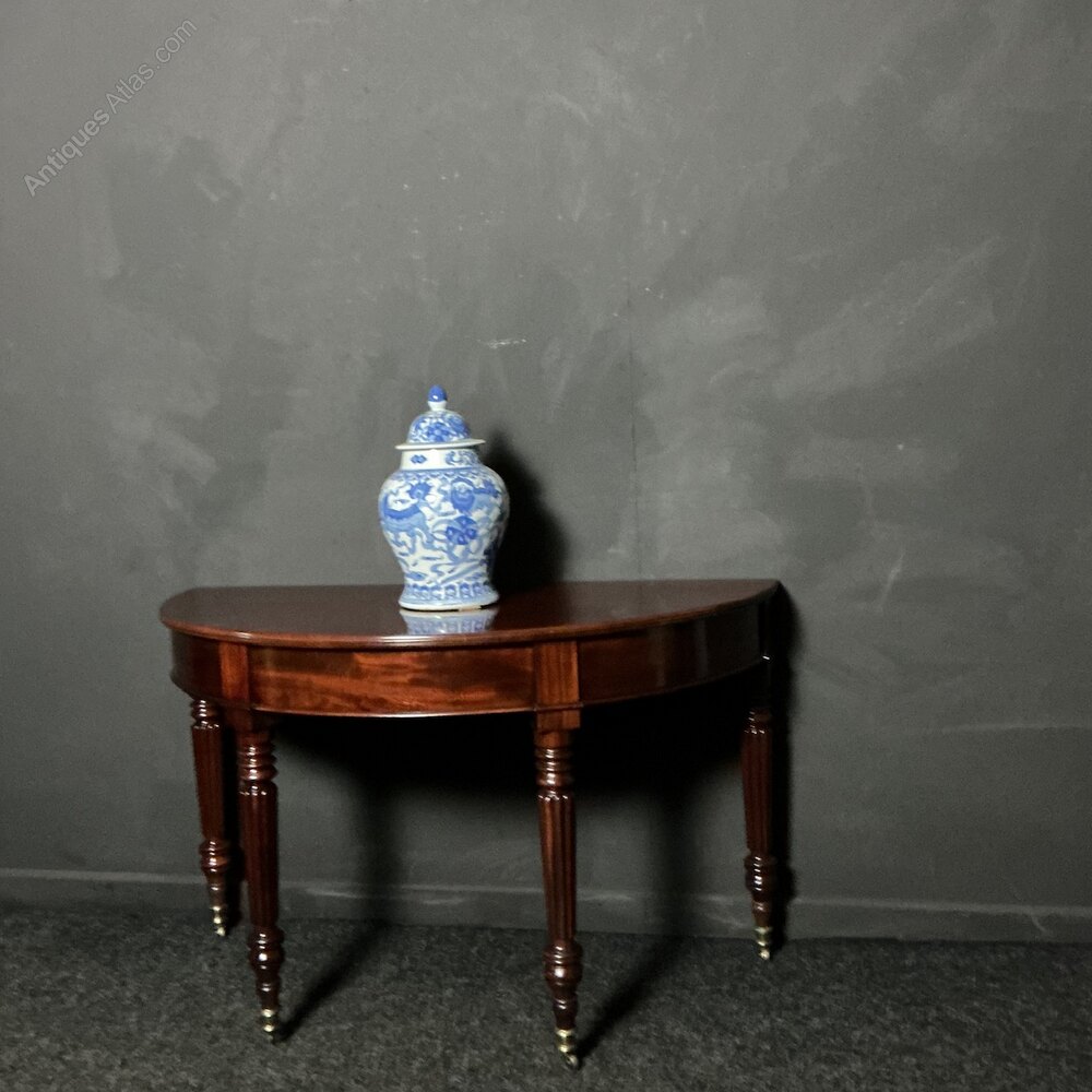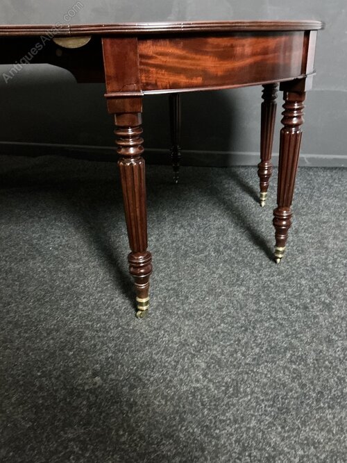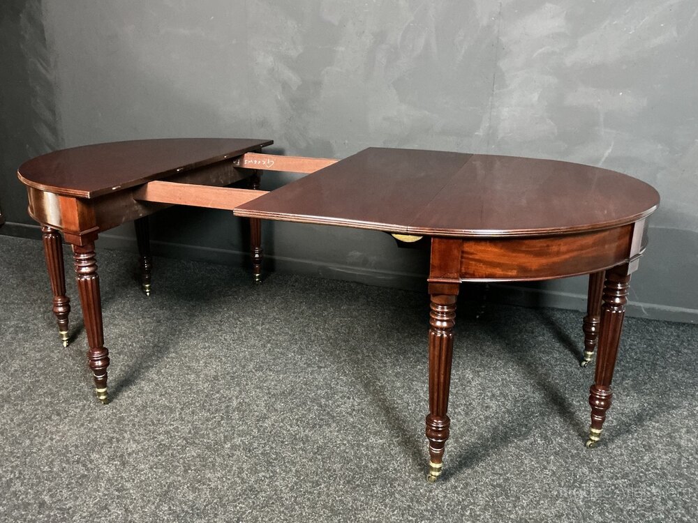 Circa 1830. A superb extending table very much in the manner of Gillows of Lancaster. From the quality timbers to the cabinet making and typical fluted legs everything leans to the Gillows factory. It was even purchased in the north west. Most versatile as a closed round 4 seater or pair of side tables . Re polished due to sun fading the table has no issues and presents itself very well..The Mahogany is now a good rich colour and the table is ready to use and enjoy.Free UK mainland delivery on this piece.