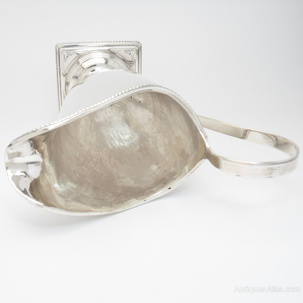A very fine solid silver Georgian helmet shaped cream jug with square foot and detailed edging.Made by Henry Chawner in London 1793, the jug has wonderfully clear hallmarks under the foot.