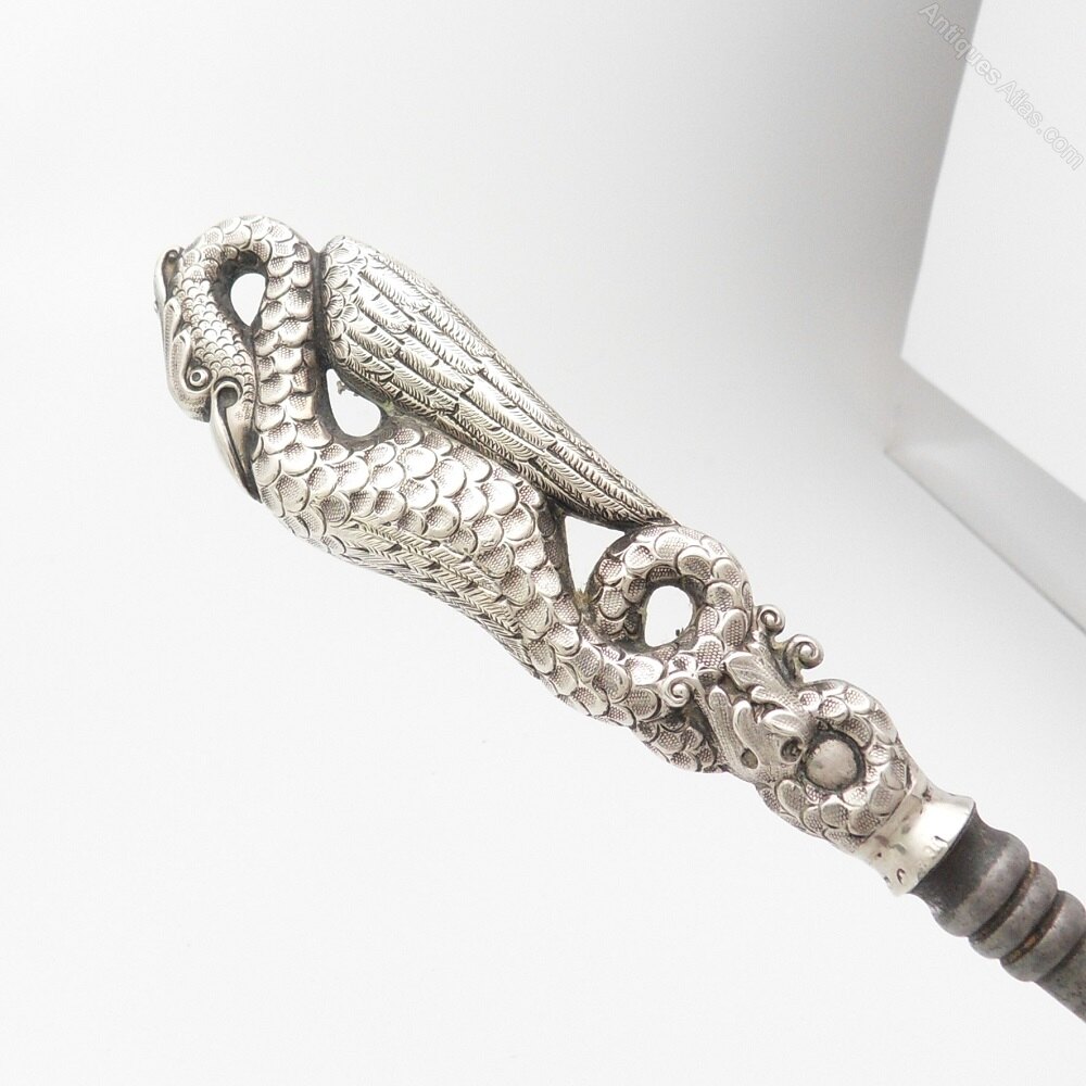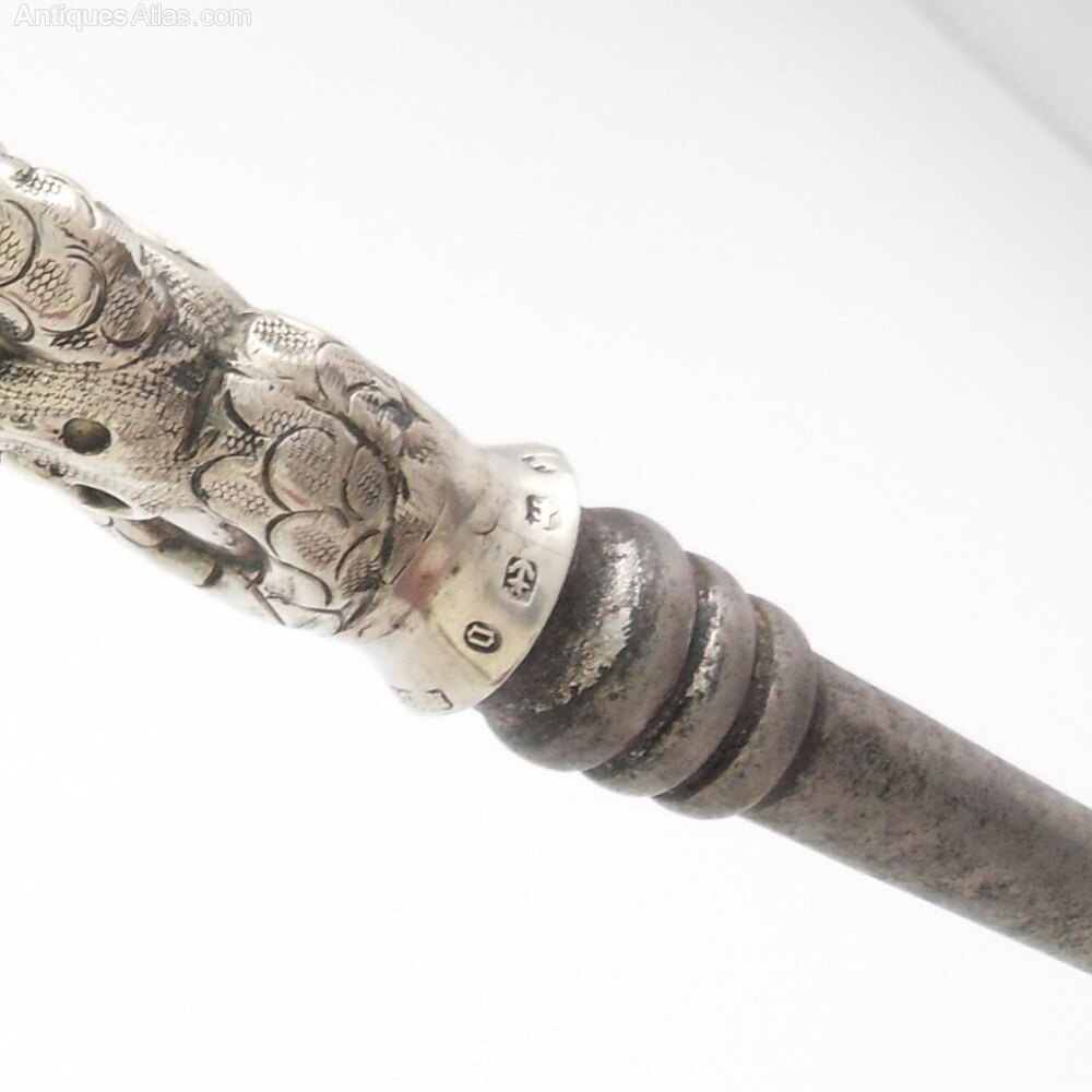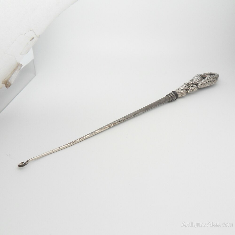 Stunning large Victorian silver handled button hook with a wonderfully detailed winged creature. A beautiful example of detailing and an unusual bird make this a brilliant gift for someone that collects button hooks or interesting silver items.There are full hallmarks for Birmingham 1888 Horton & Allday which can be seen just above the join with the button hook section.