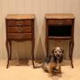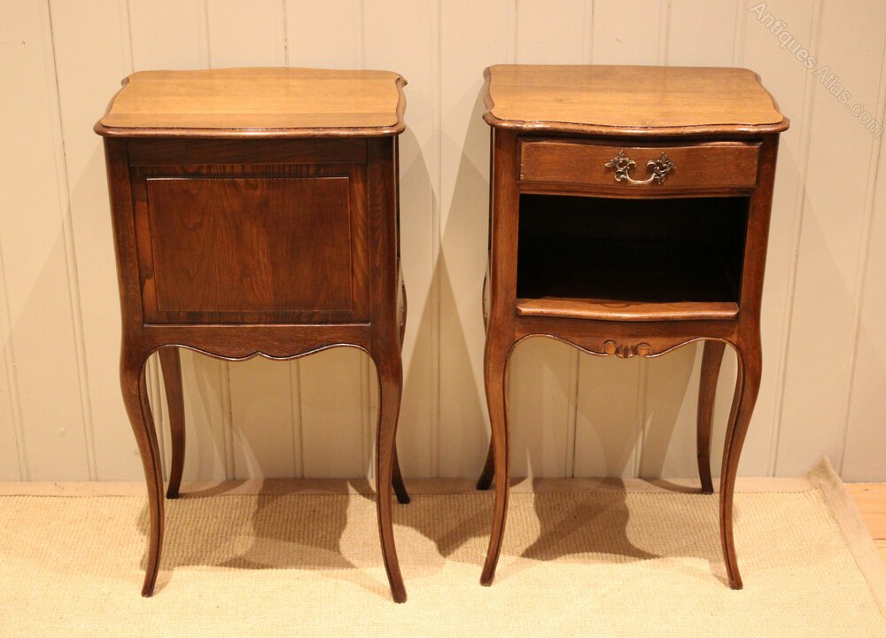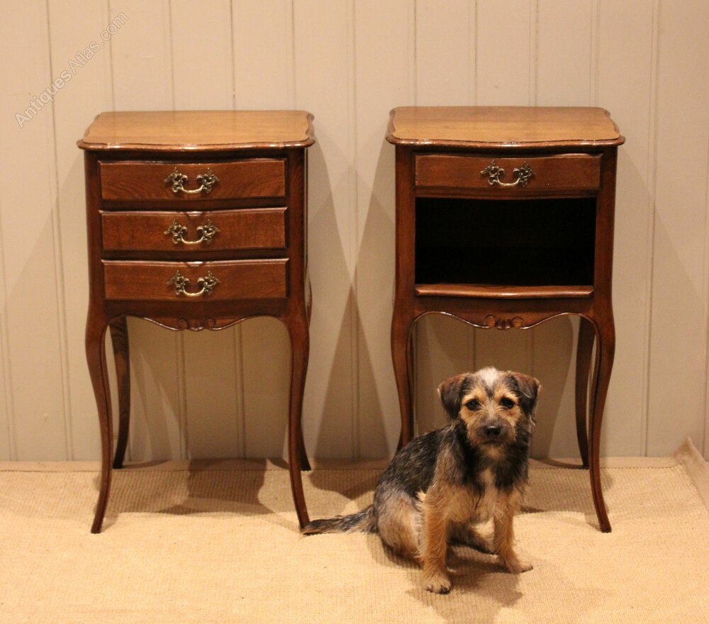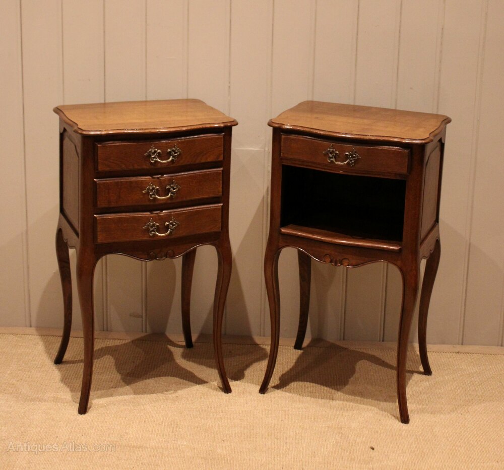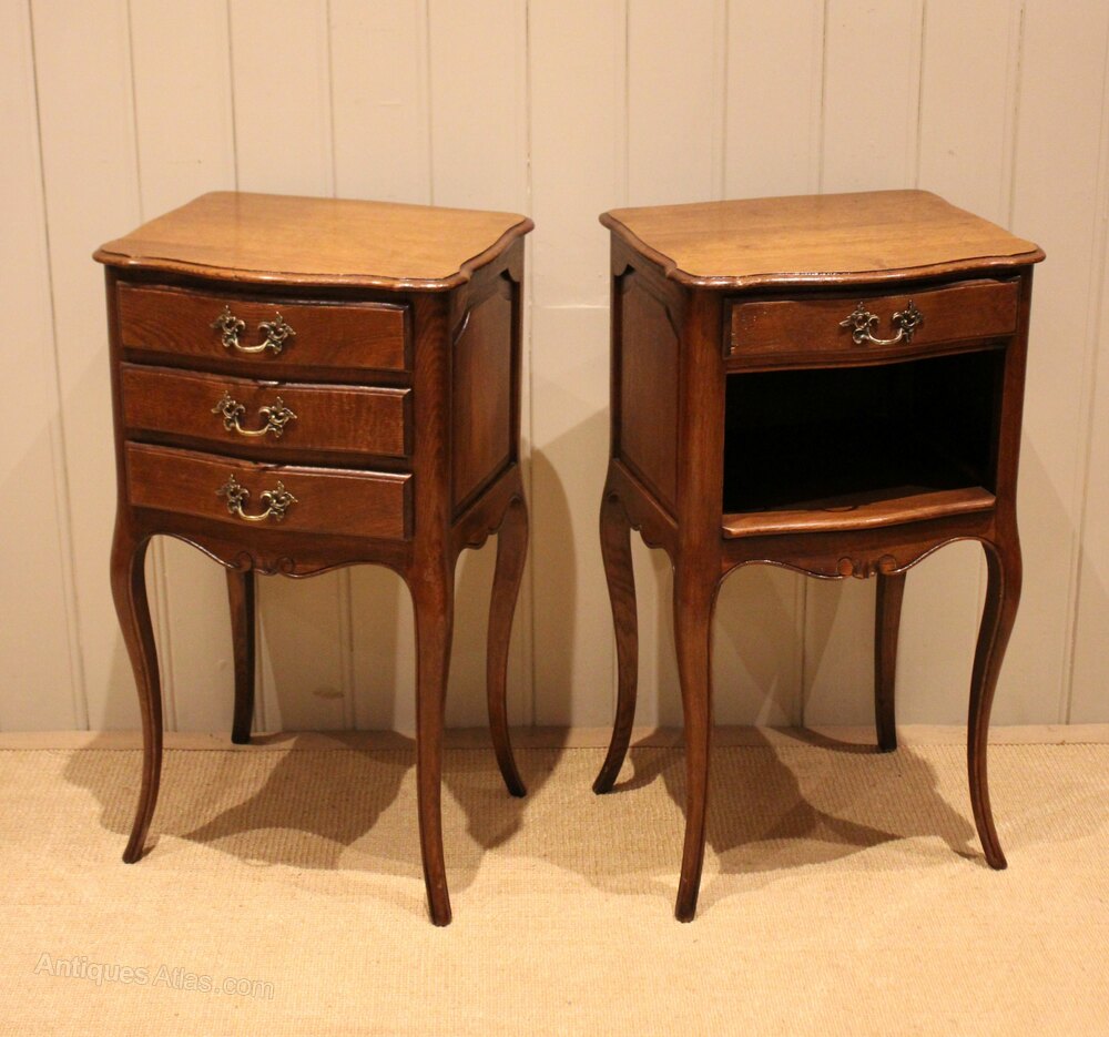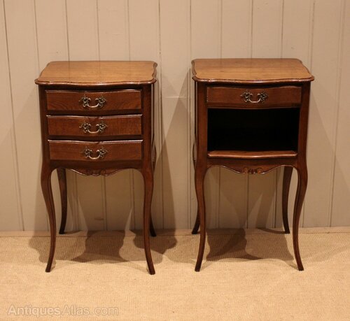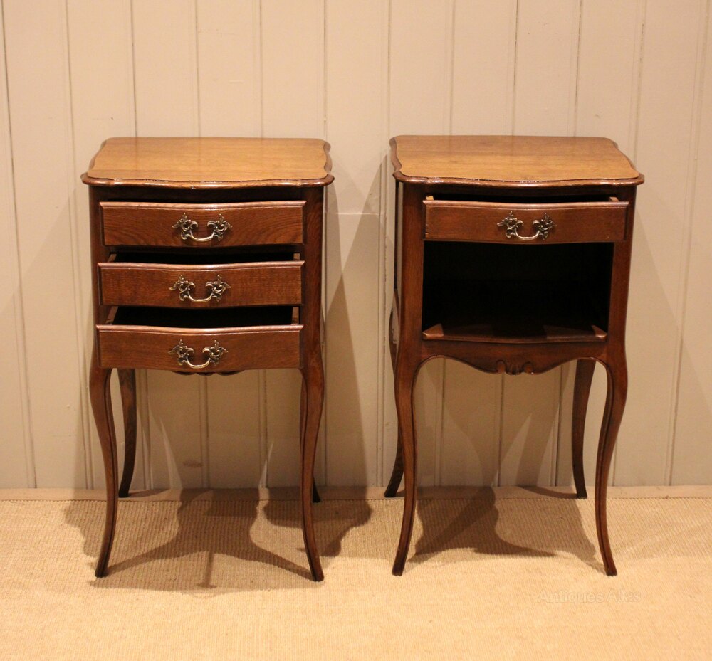 Pair of French oak bedside cabinets one having three drawers the other with a single drawer above an open cupboard base raised on cabriole legsHeight