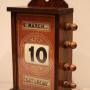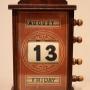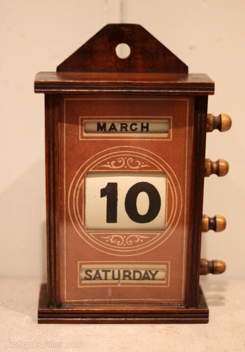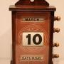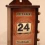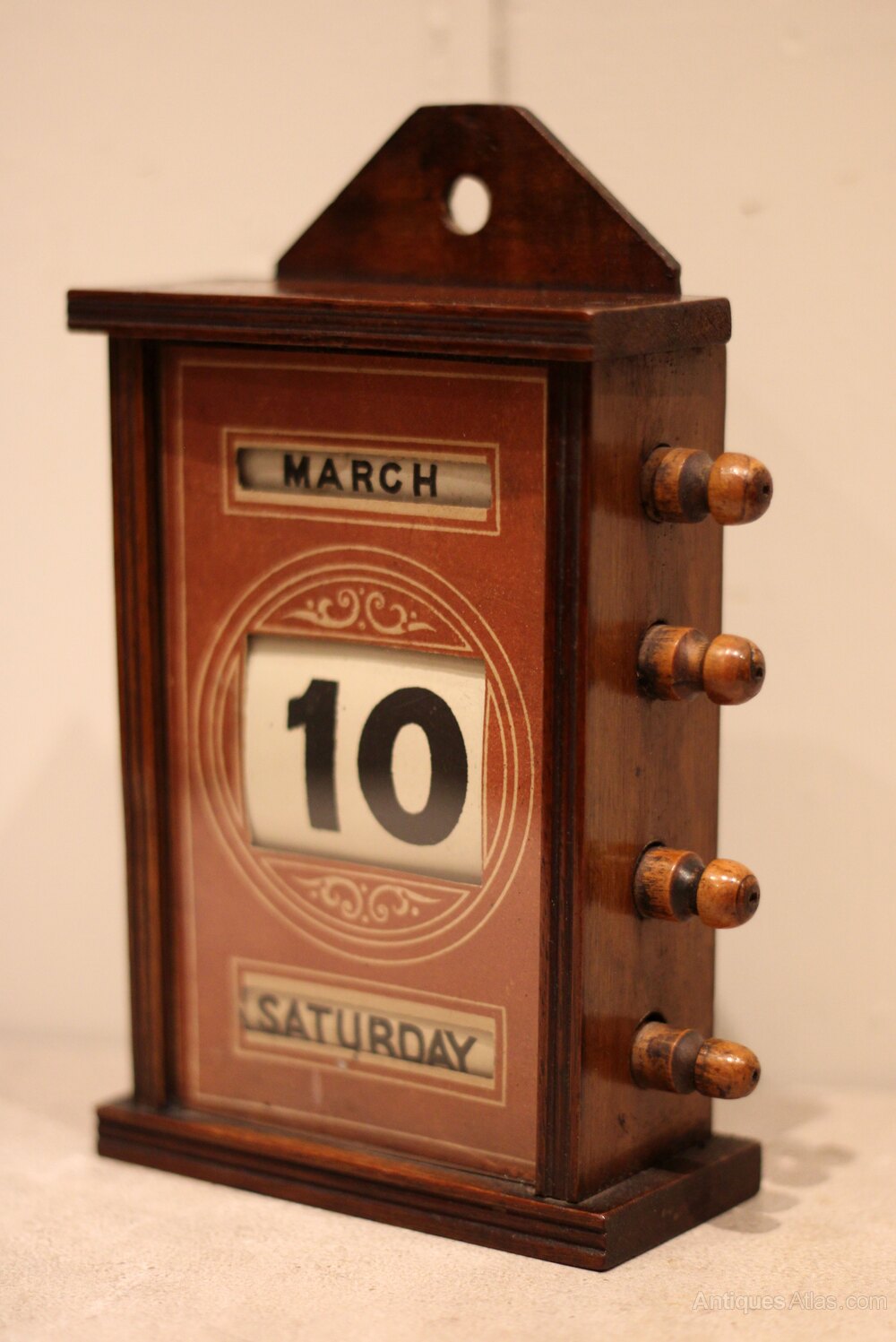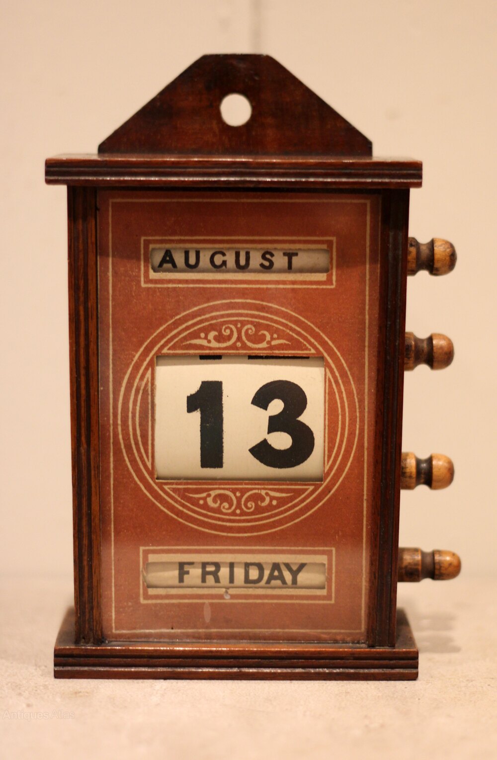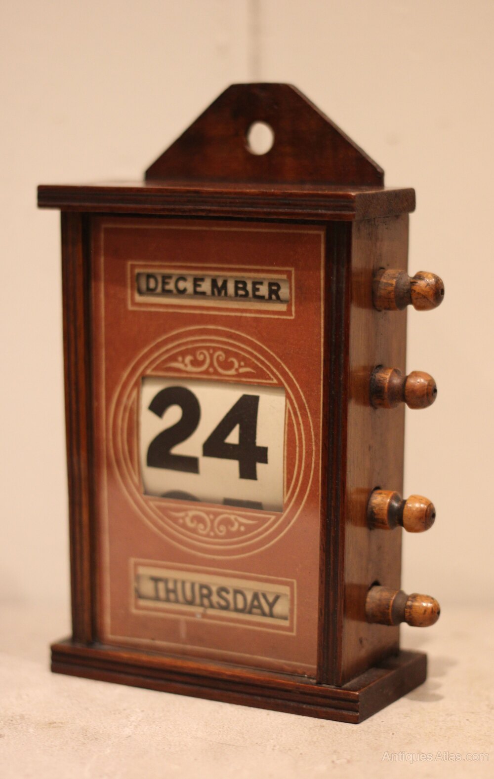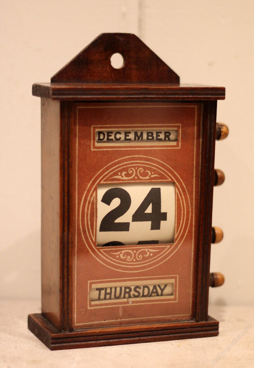 Late 19th Century mahogany desk calendar having , glazed viewing windows and wooden adjusters to the side , with the original painted spools , raised on a plinth base .Height