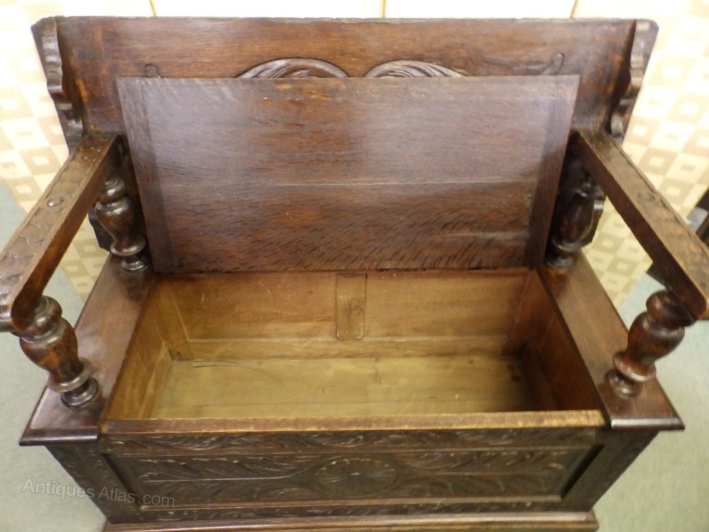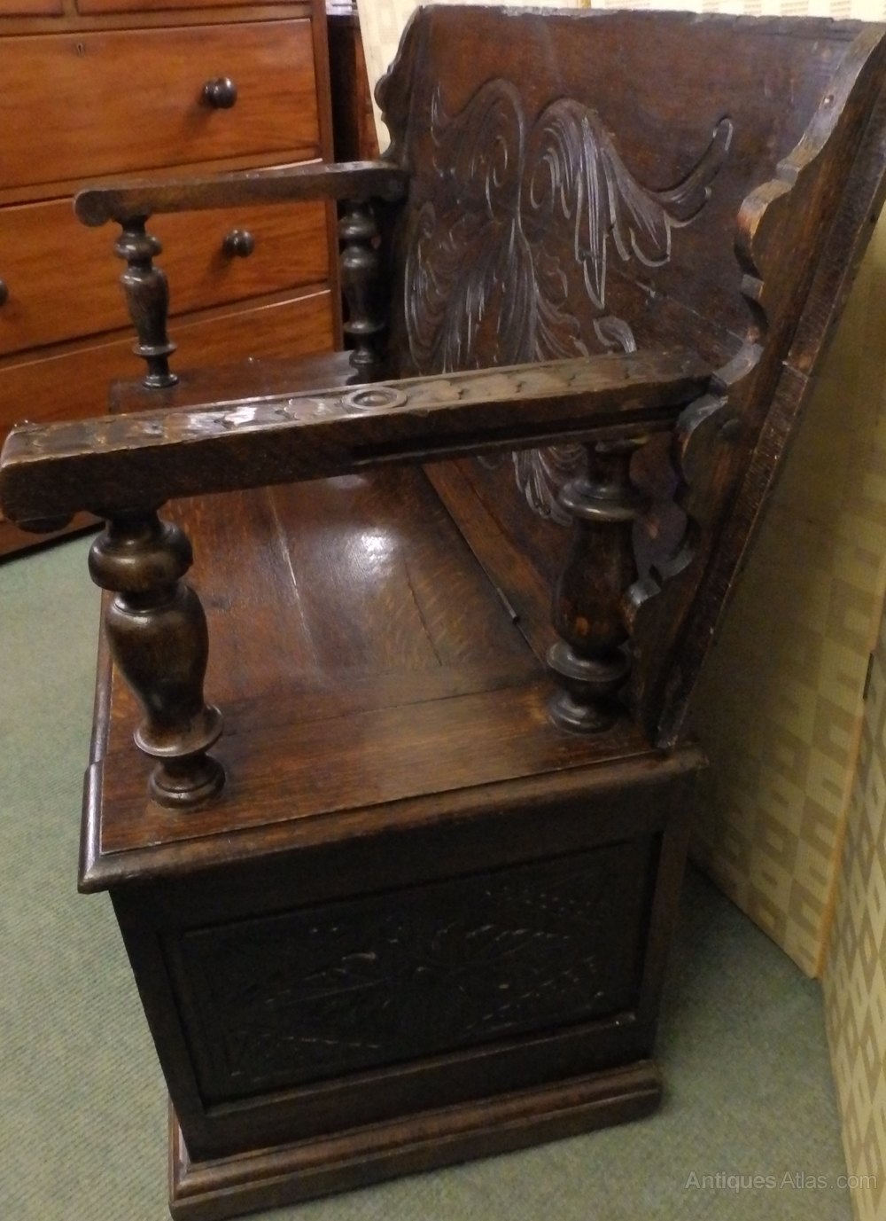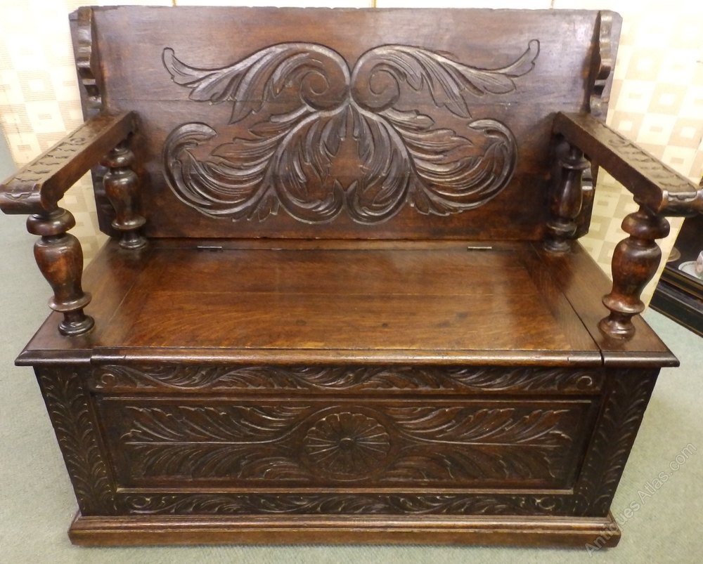 no-303-1890 oak carved monks bench (small shrinkage split on seat repaired ) in good condition seat height 31"DateLate Victorian :