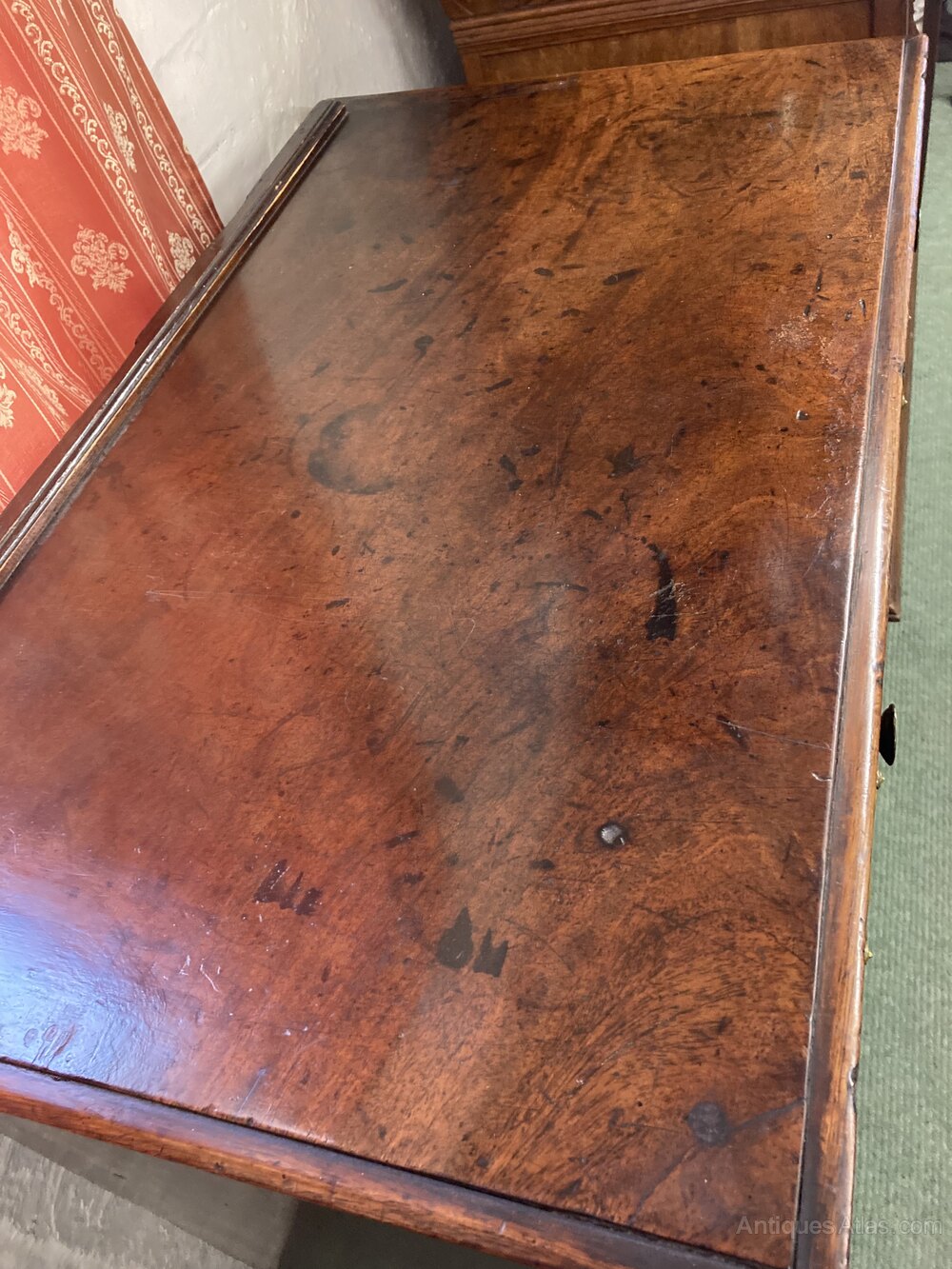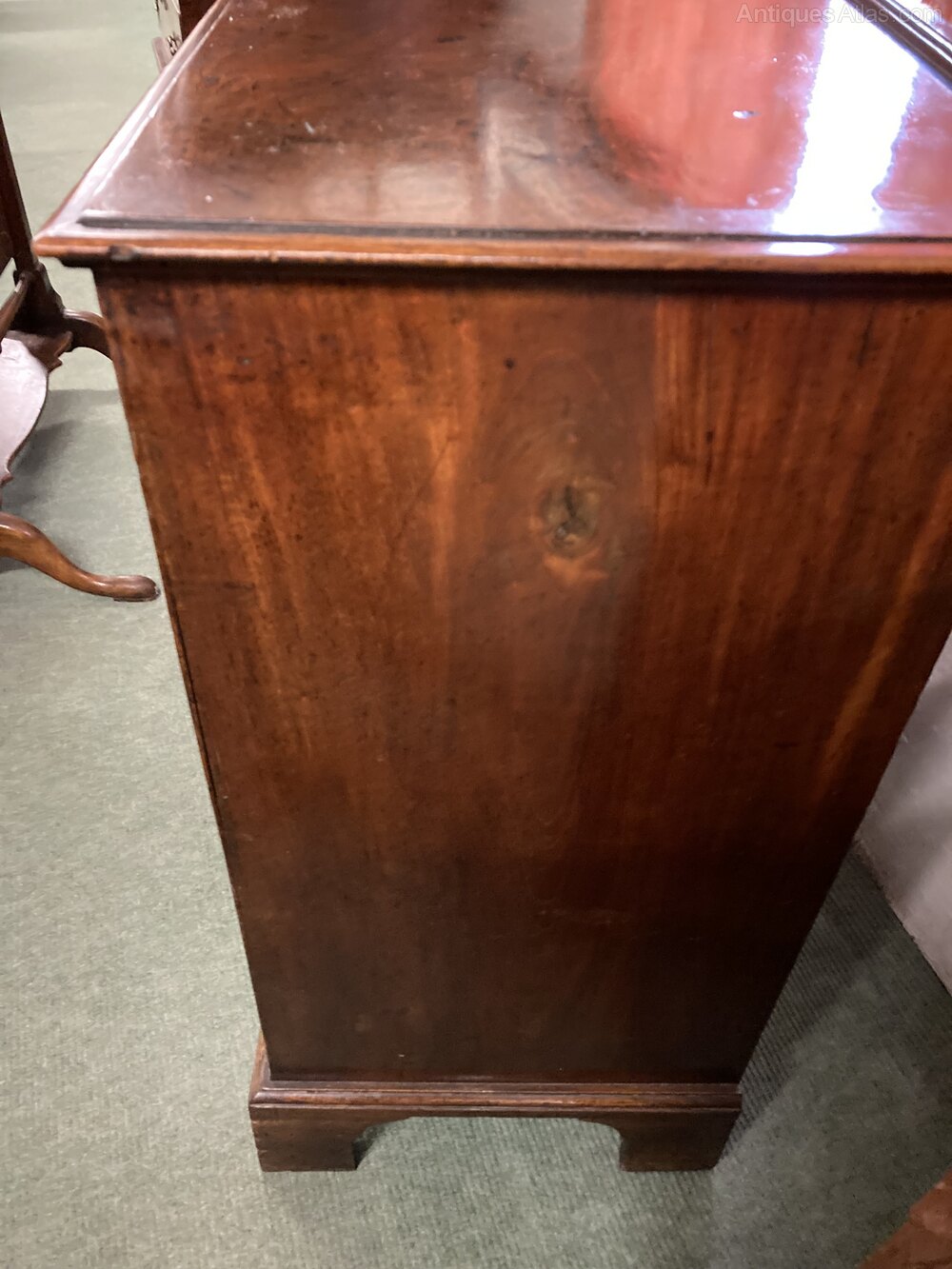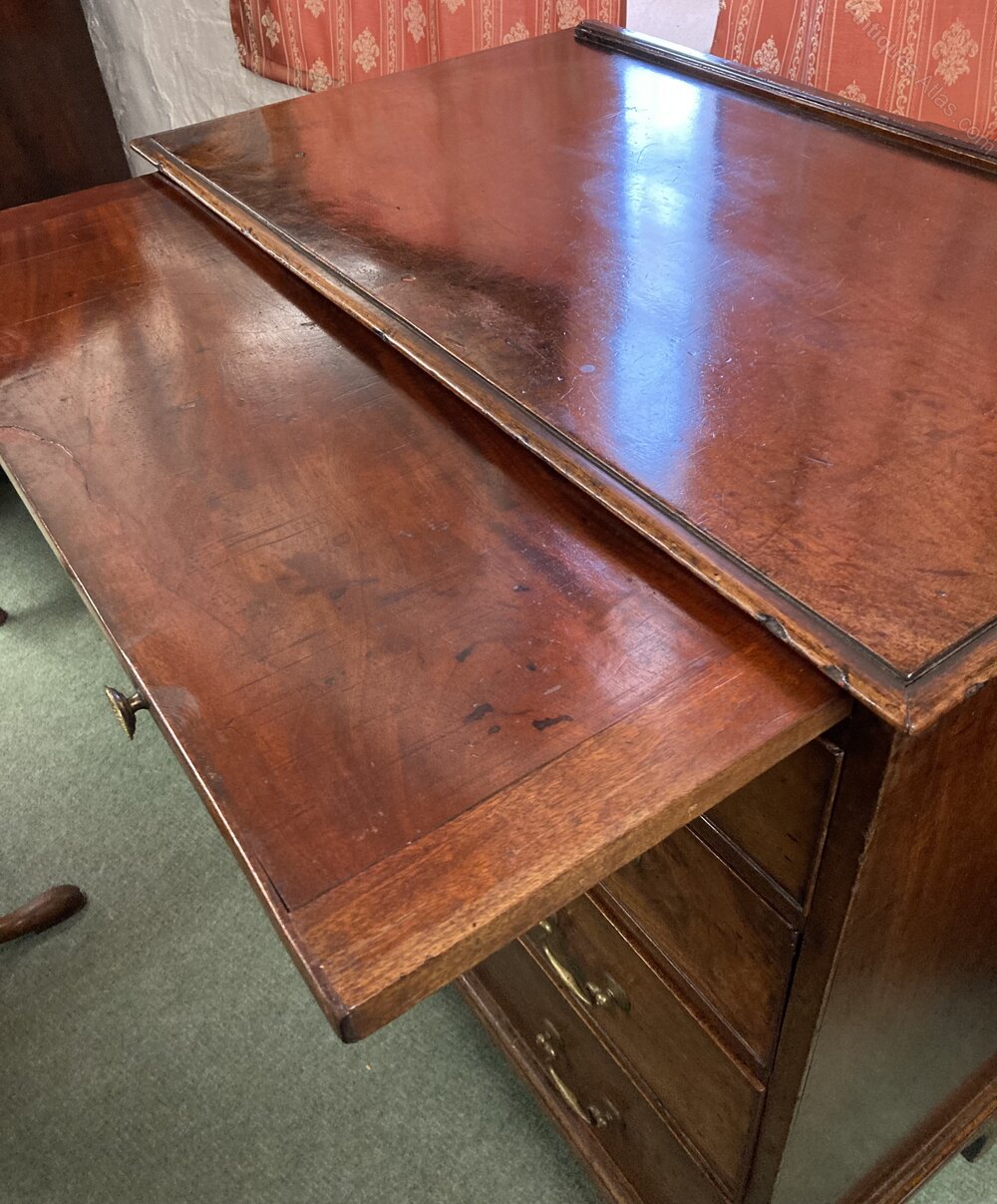 no-452-1770 Gents mahogany chest of drawers with brushing slide (there are some markings on the top where a later top had been added to this item which have now been removed )other wise in good conditionDateLate 18th Century :