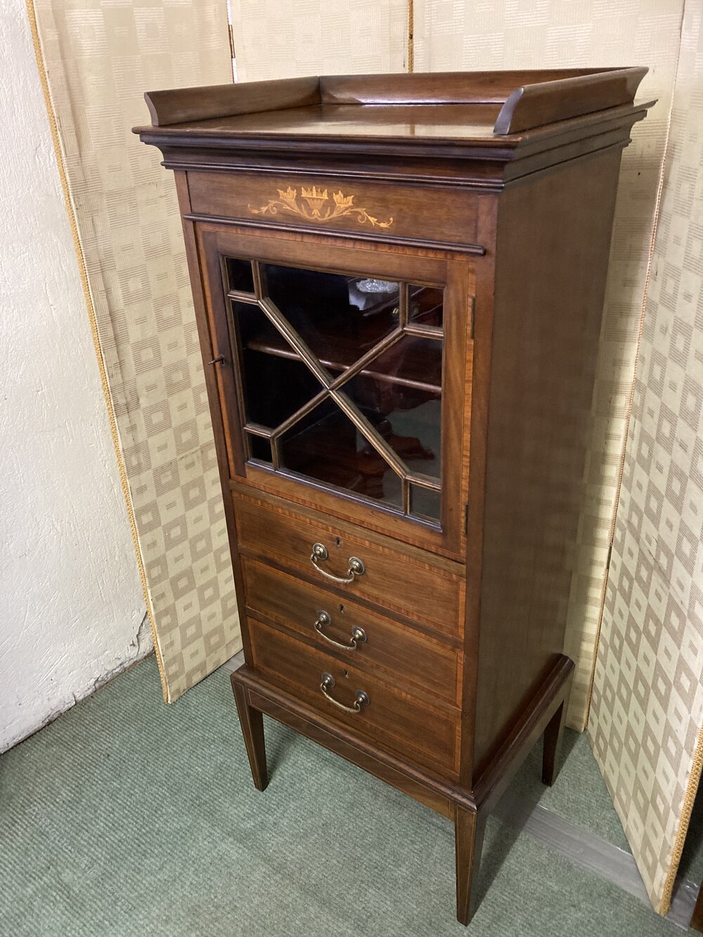 no-560-Edwardian mahogany inlaid Music cabinet in very good conditionDateEdwardian :