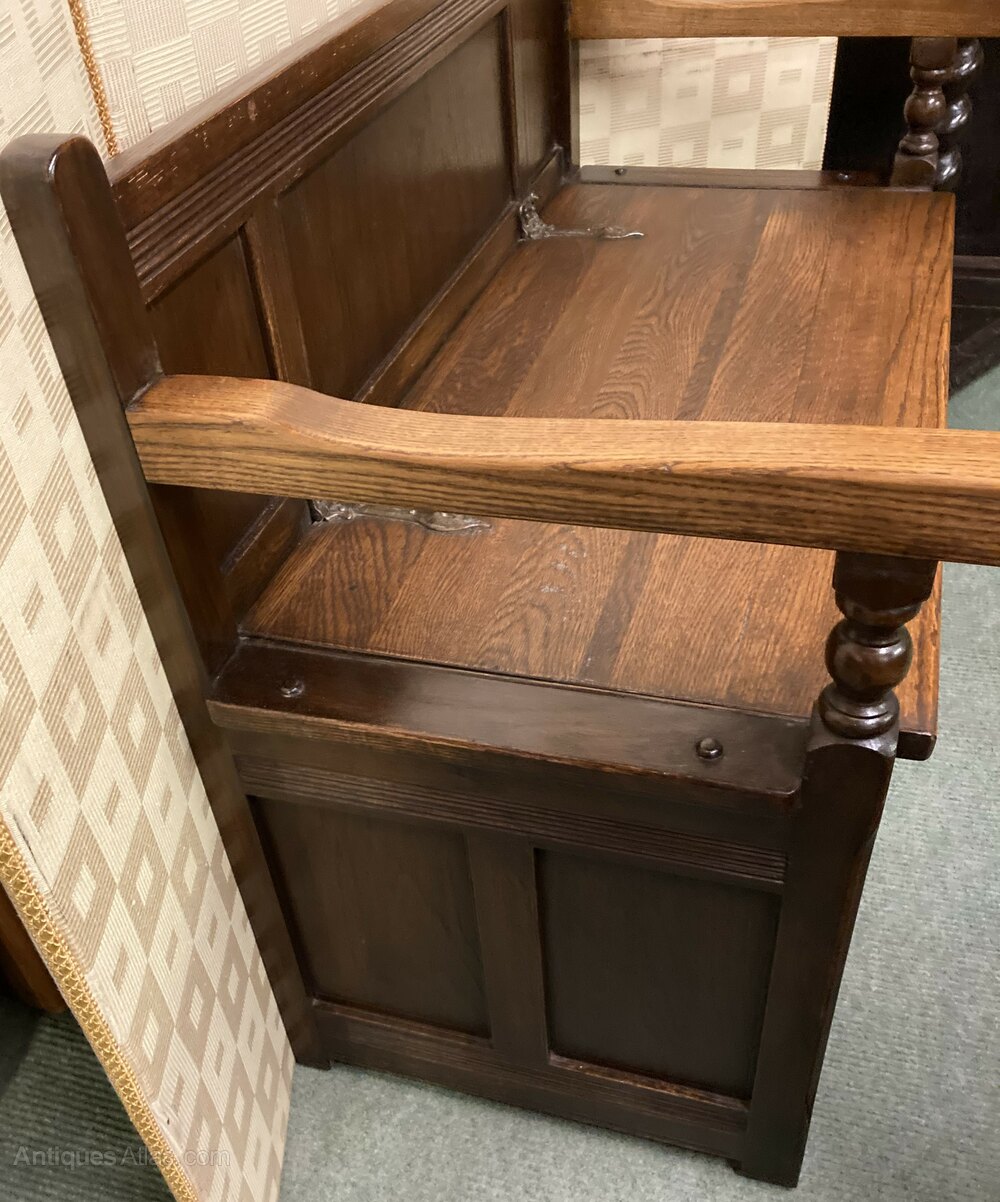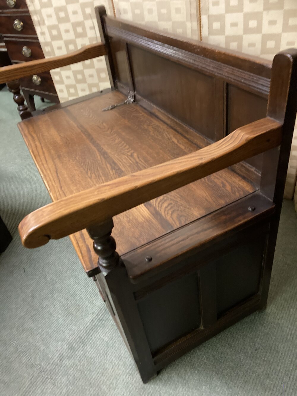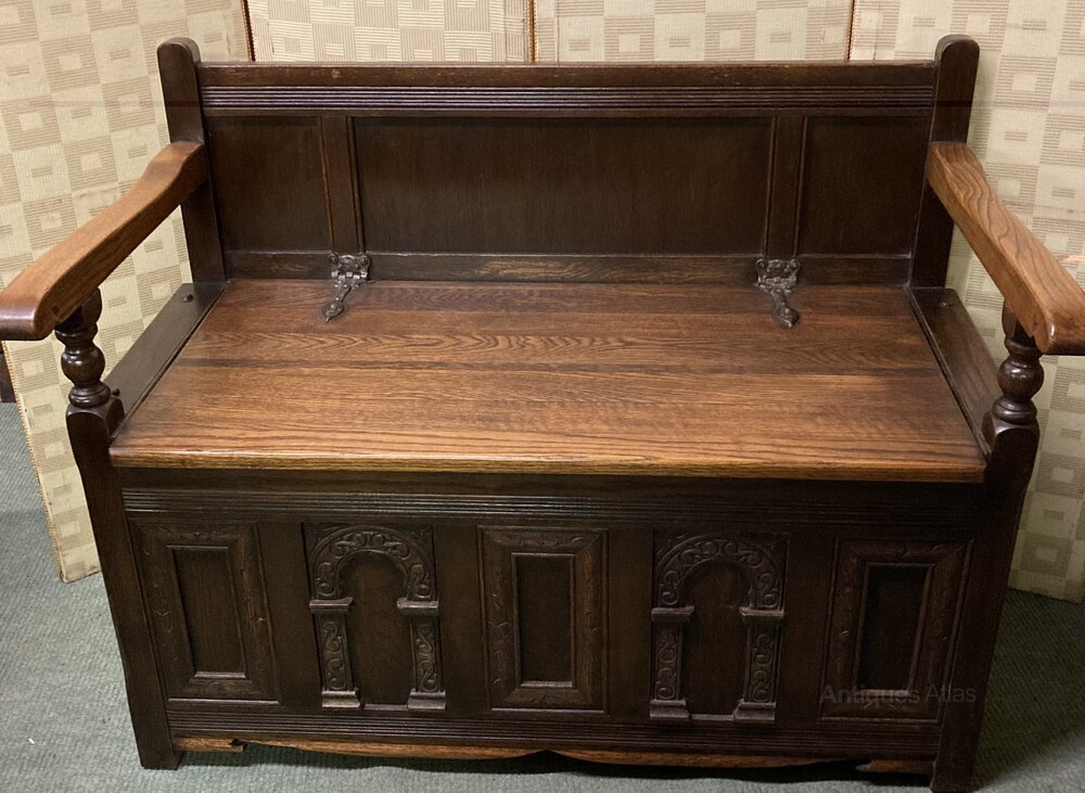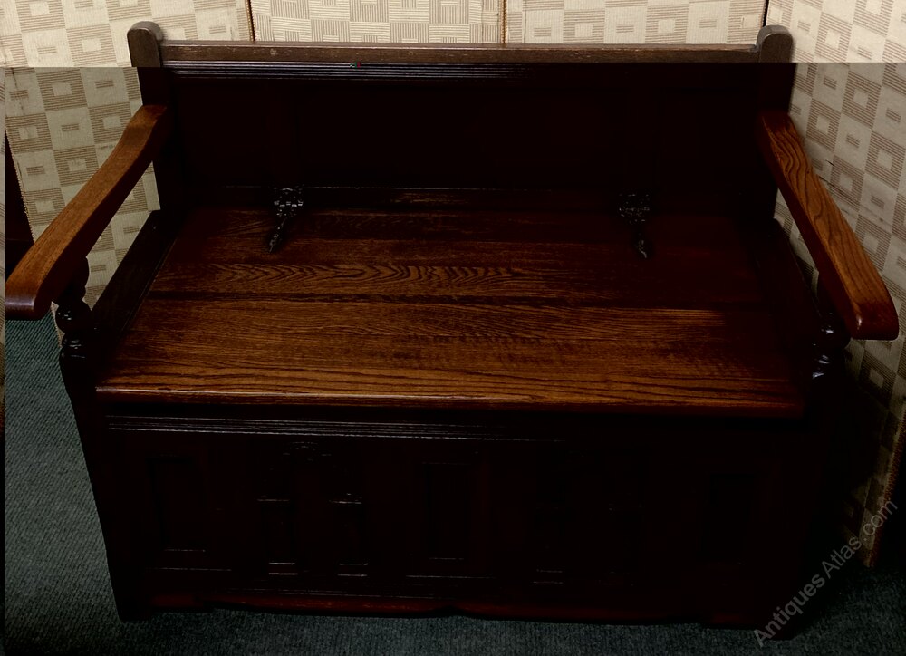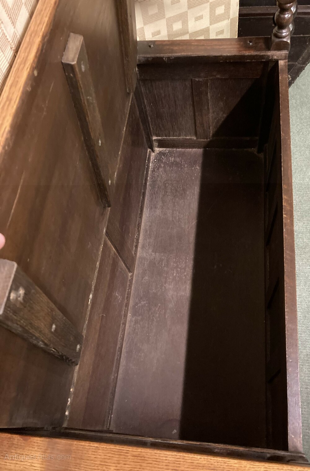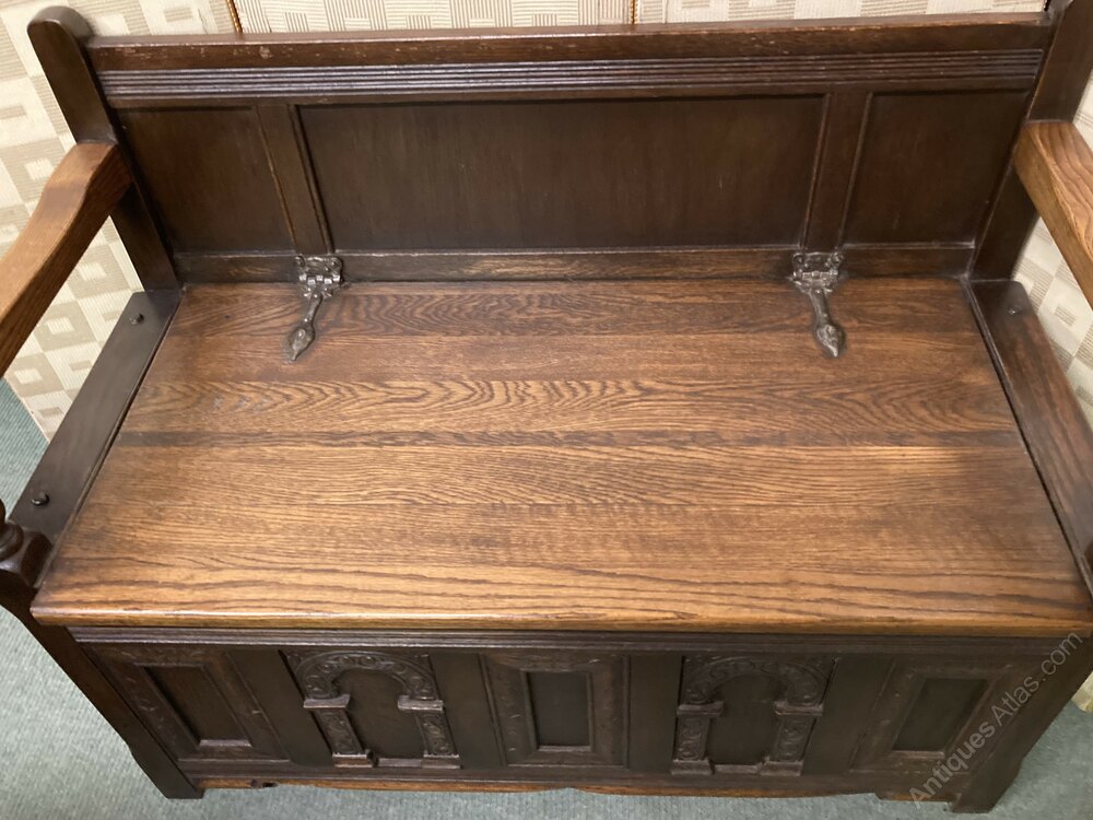 no-103-Mid 1900s oak lift top bench in 1500s style in very good conditionDate1920s :