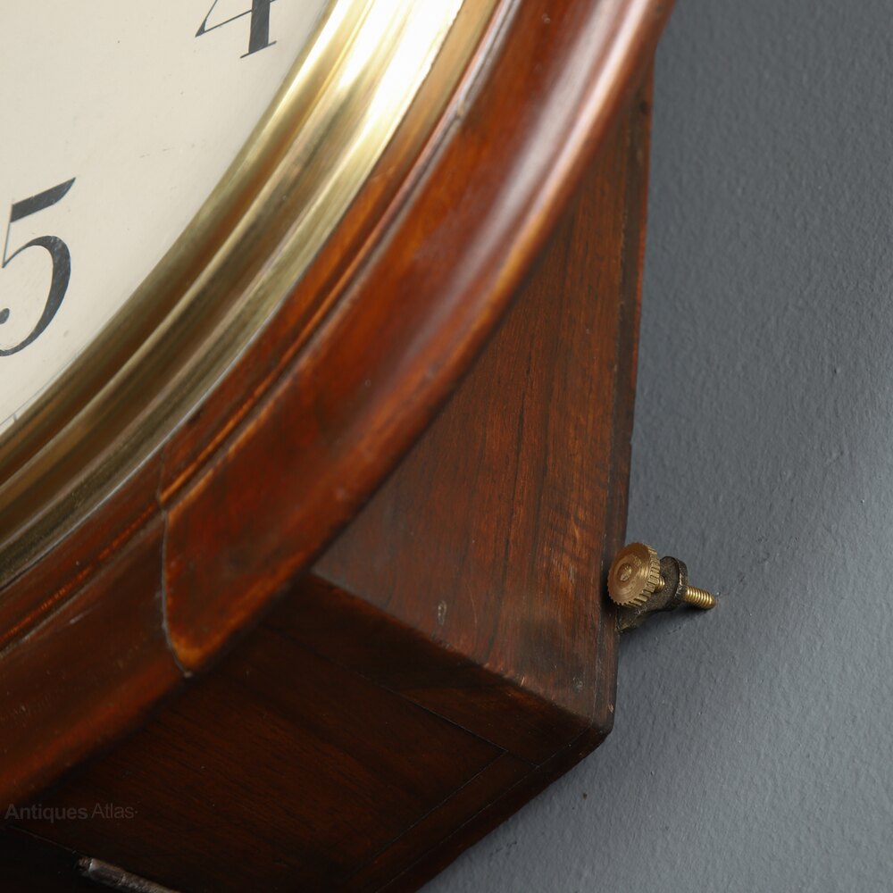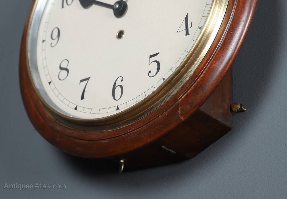 This mahogany wall clock was designed for use in public buildings such as schools or railway stations within the British colonies, predominantly India therefore, its reliability and quality of construction were paramount. This mechanism is of good quality and it was constructed prior to wartime restrictions being imposed regarding materials therefore, no costs were spared in its construction.