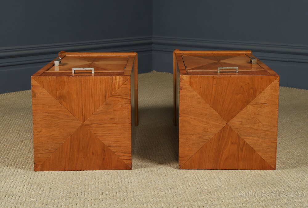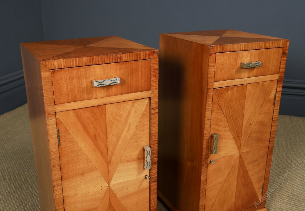 Pair of Art Deco Walnut Bedside Tables Cabinets