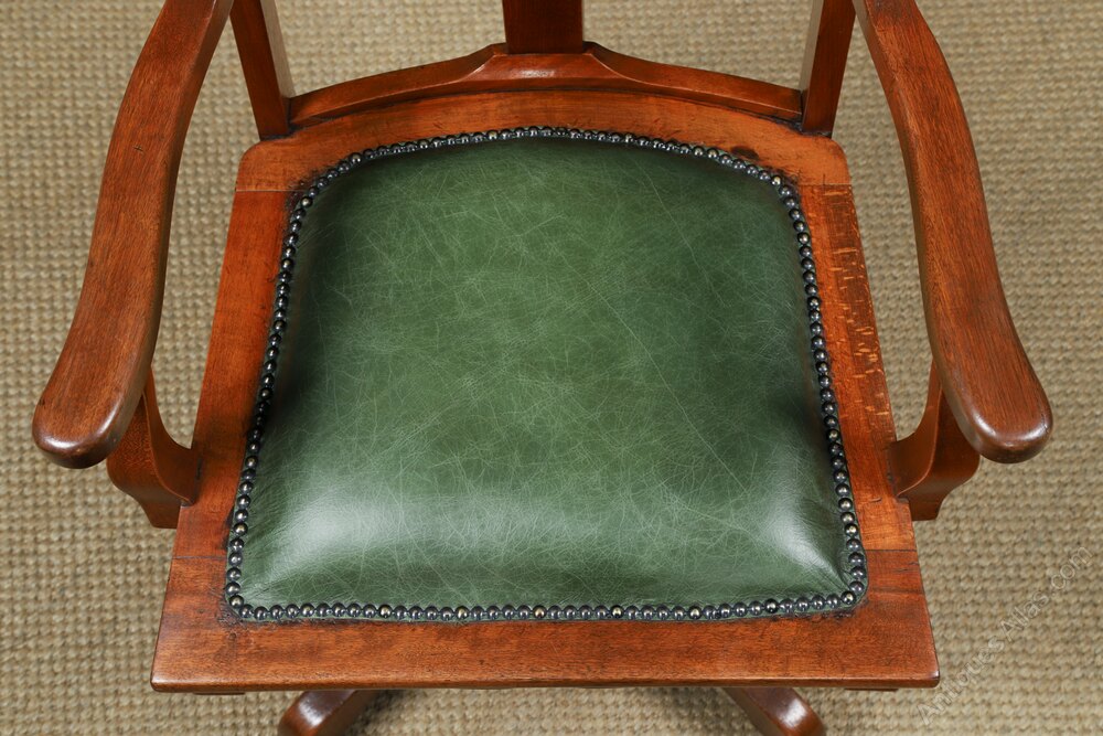 Arts & Crafts Revolving Beech & Leather Desk Chair