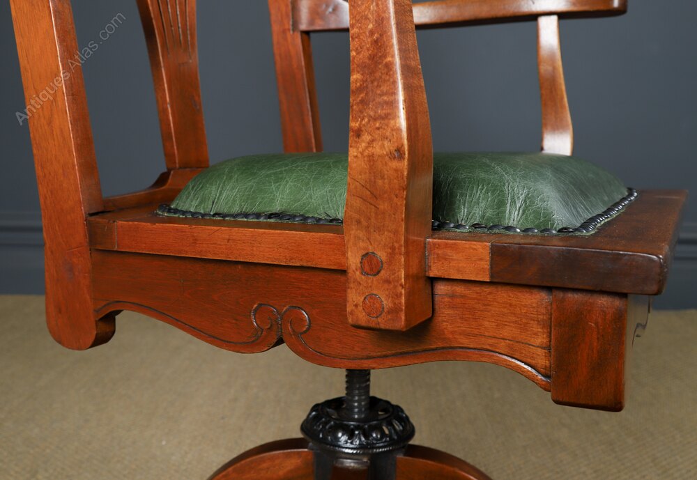The Arts & Crafts desk chair boasts a rich golden-brown colour. The antique office chair has been cleaned and French polished, by hand, to a professional standard, in our workshop, therefore the polish and patination is of an excellent standard. This Arts & Crafts desk chair would look superb in a variety of rooms in the home, especially the office or study as it is so comfortable. This antique office chair would certainly grace any home. So, don’t miss out on your chance to own a lovely piece of furniture.
