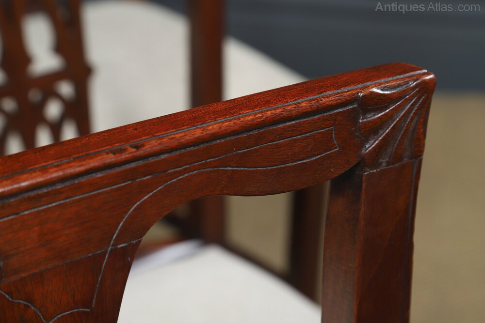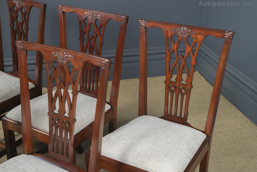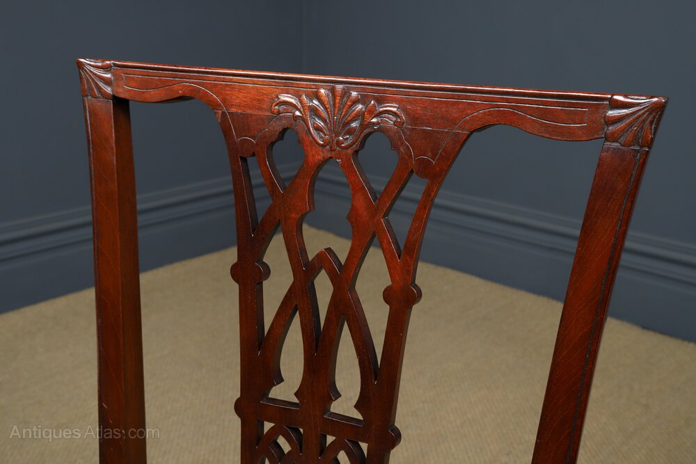 Six Antique Chippendale Gothic Mahogany Dining Chairs