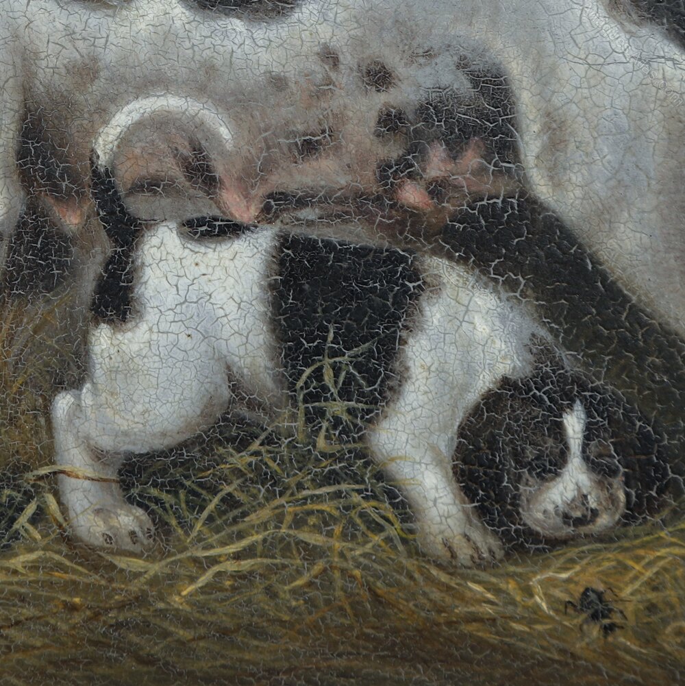 Georgian Samuel Raven Hound & Litter Oil Painting