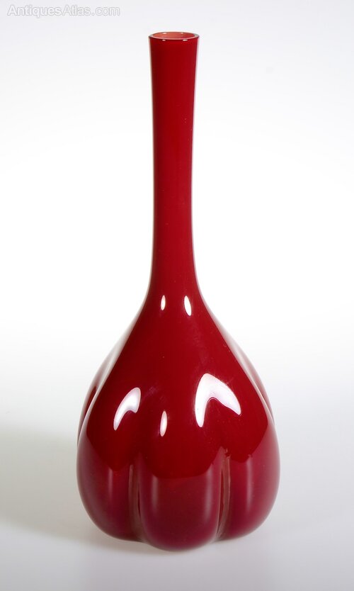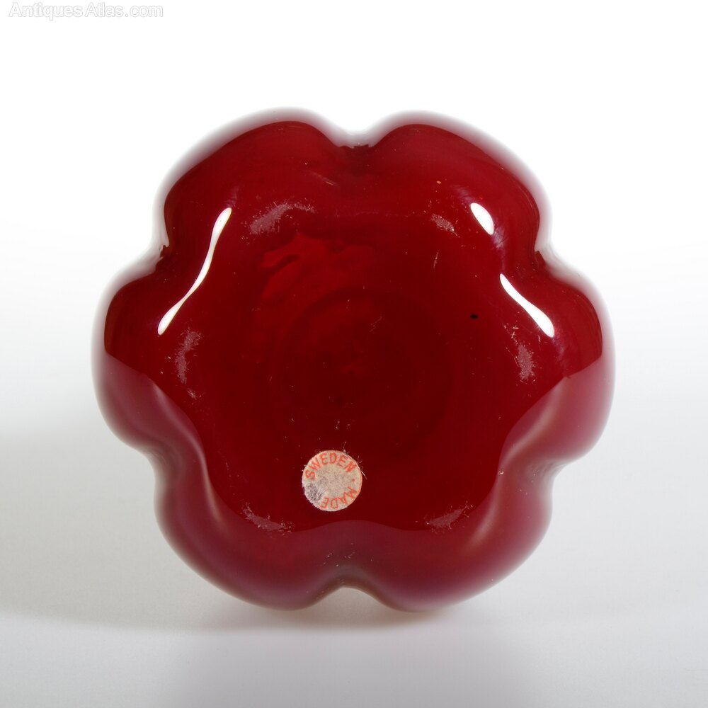 Retro c1970s Swedish Elme Glasbruk glass vase known as the melon glass vase, the red glass vase was designed by Arthur Percy with original label to base. Excellent Condition. H. 24cm-25cm. Dia 2.25cm. Rim. Dia 6cm. Base.The price includes free postage via Royal Mail Signed For delivery to the UK mainland destinations.