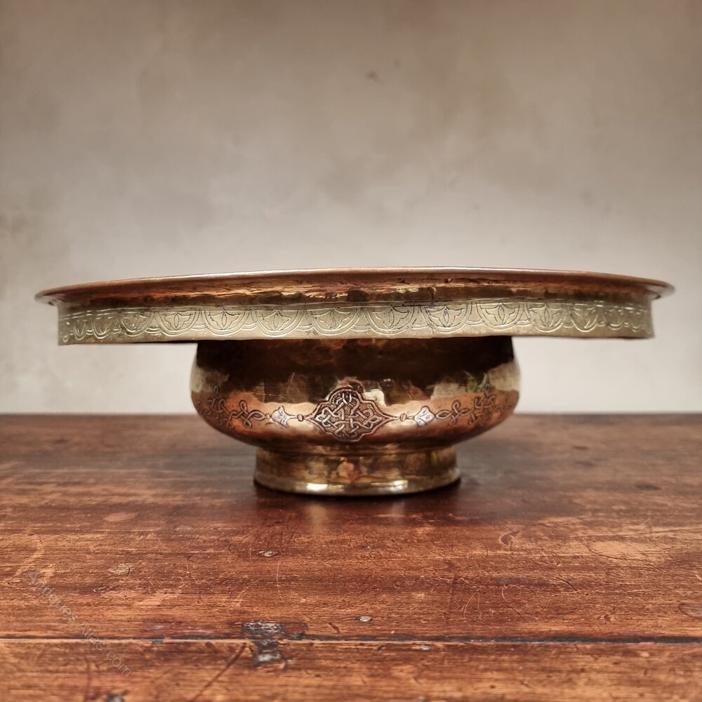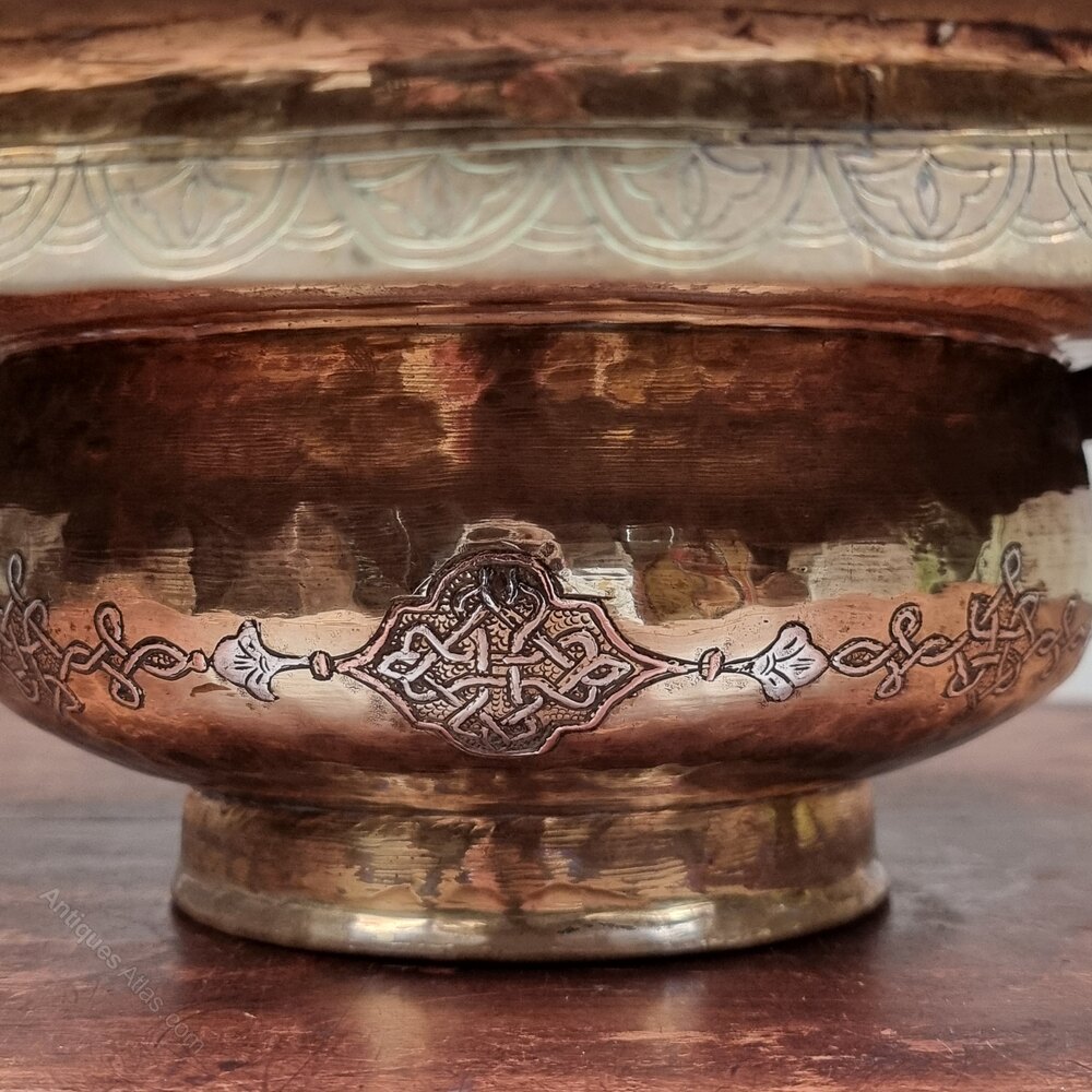 A 19th Century Islamic Silver Inlaid Wash Bowl.
