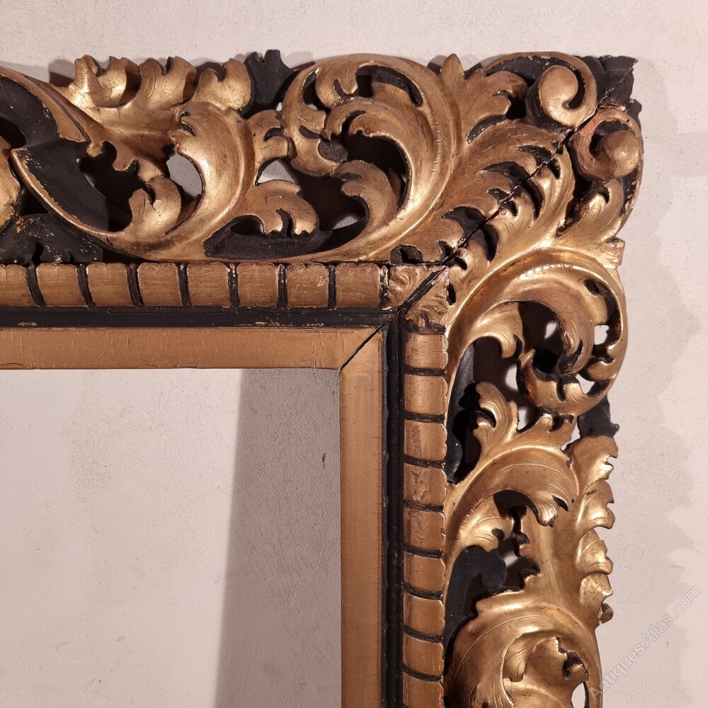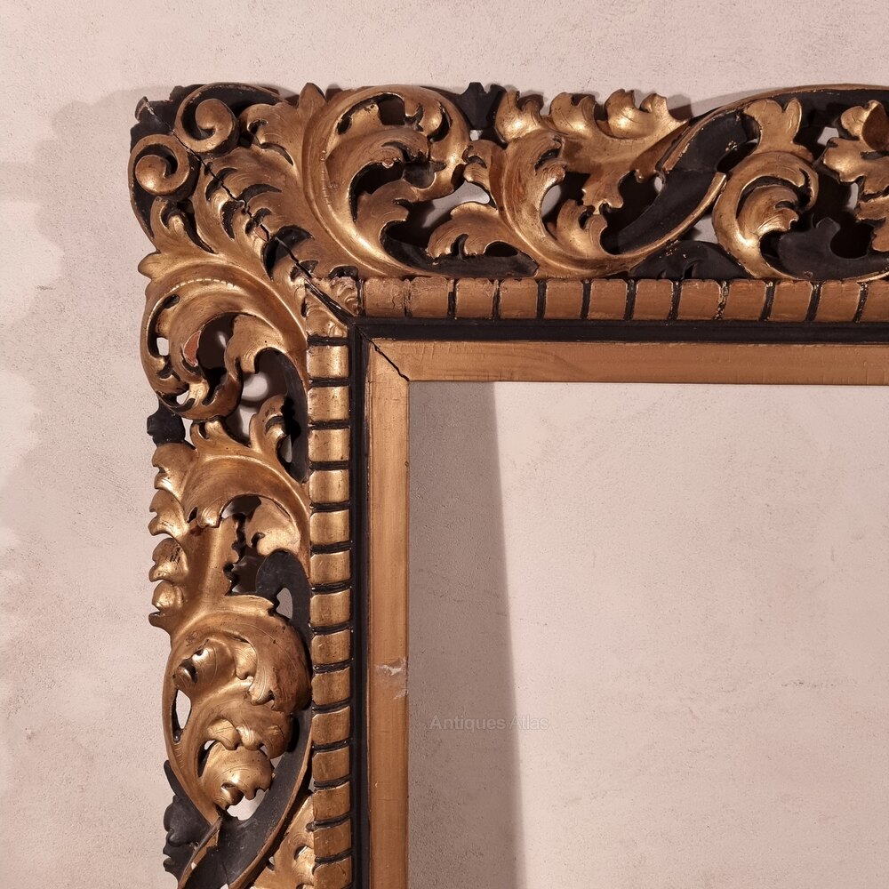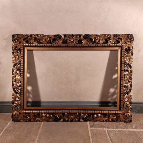 A large 19th century carved florentine and parcel gilt frame, ex christies sale labels to the back. The frame is beautifully carved and is in pretty good condition with some minor losses, one of the short runs of carving is slightly loose but this could easily be remedied.Overall measurements