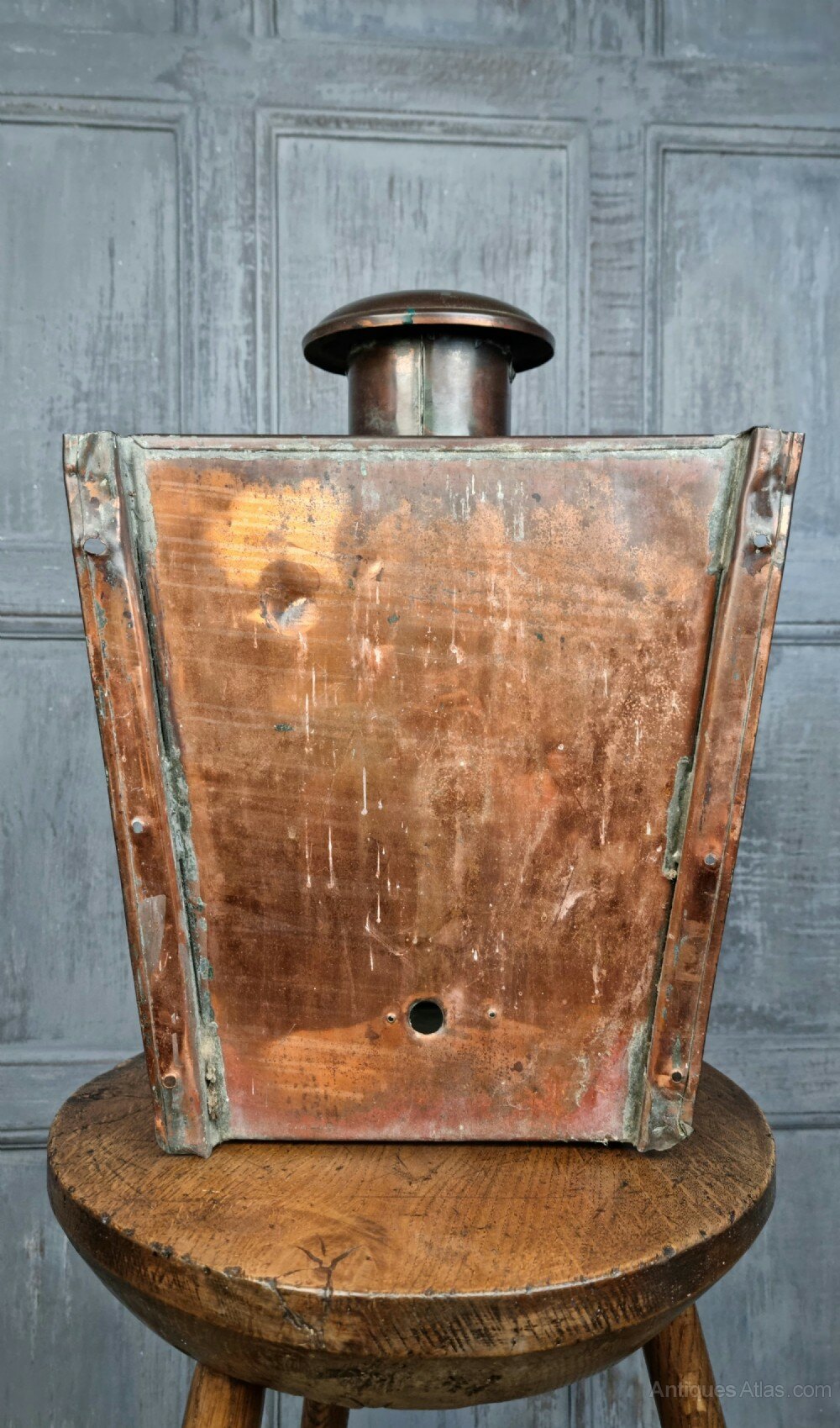 A Victorian copper wall light, complete with original glass and pinned door. Overall the wall light is in excellent condition, there is a hole in the back for wiring, this would look fantastic on the exterior of a period property.measurements
