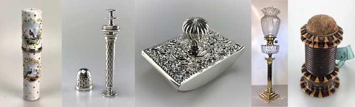 Quality antique sewing items, desk-related items and antique lighting. Online only. Please ring or email with all enquiries.
