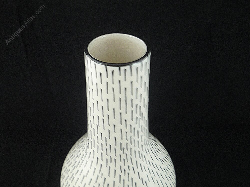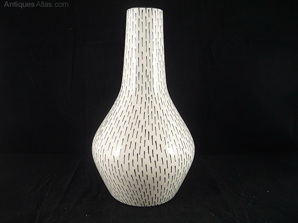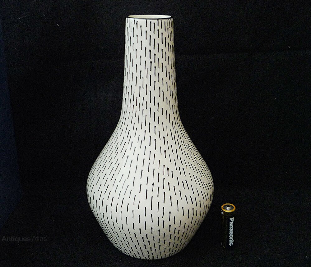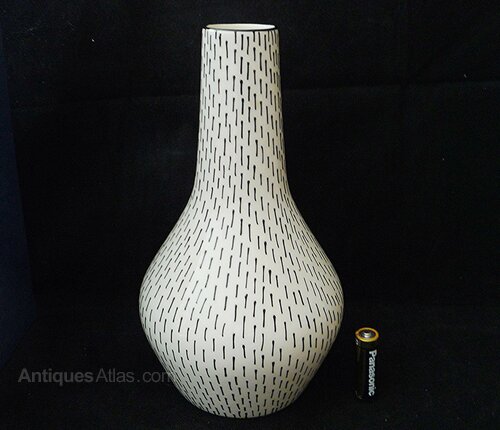 A fabulous Midwinter tubelined stubble vase by Jessie Tait c1956-1958. These vases were individually tubeline applied so each is slightly different.23cm high. In excellent condition with no chips, cracks, hairlines or crazing. A lovely example.