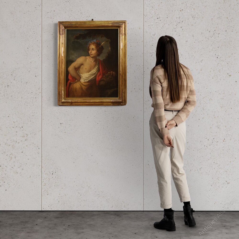 A painting with a powerful scenic and emotional impact, capable of enhancing classical or contemporary settings thanks to its universal subject: the victory of the youth over oppression, of beauty over brutality. Non-contemporary 19th-century frame in finely carved and gilded wood, with some loss of gilding (see photo). The painting has already been restored with relining, replacement of the stretcher, and repainting in small areas. Overall, it is in good condition. Internal dimensions: H 71 x W 53 cm. As each of our products will be accompanied by a certificate of authenticity and warranty and photographic documentation. Every item will be packed in a custom-made wooden box. Free shipping in Europe and UK (import and custom duties NOT included). Worldwide shipping at affordable prices, ask us a shipping quote. BUY IN INSTALLMENTS INTEREST FREE.