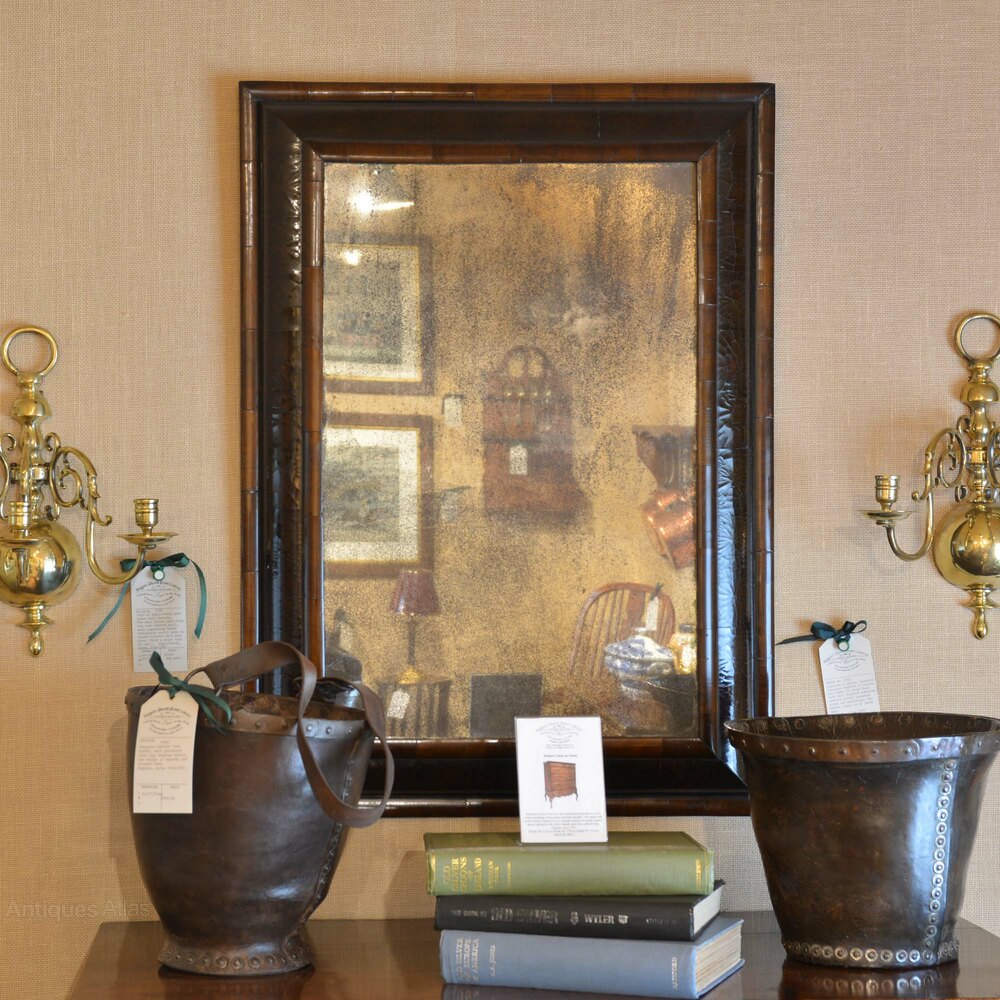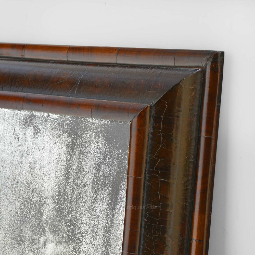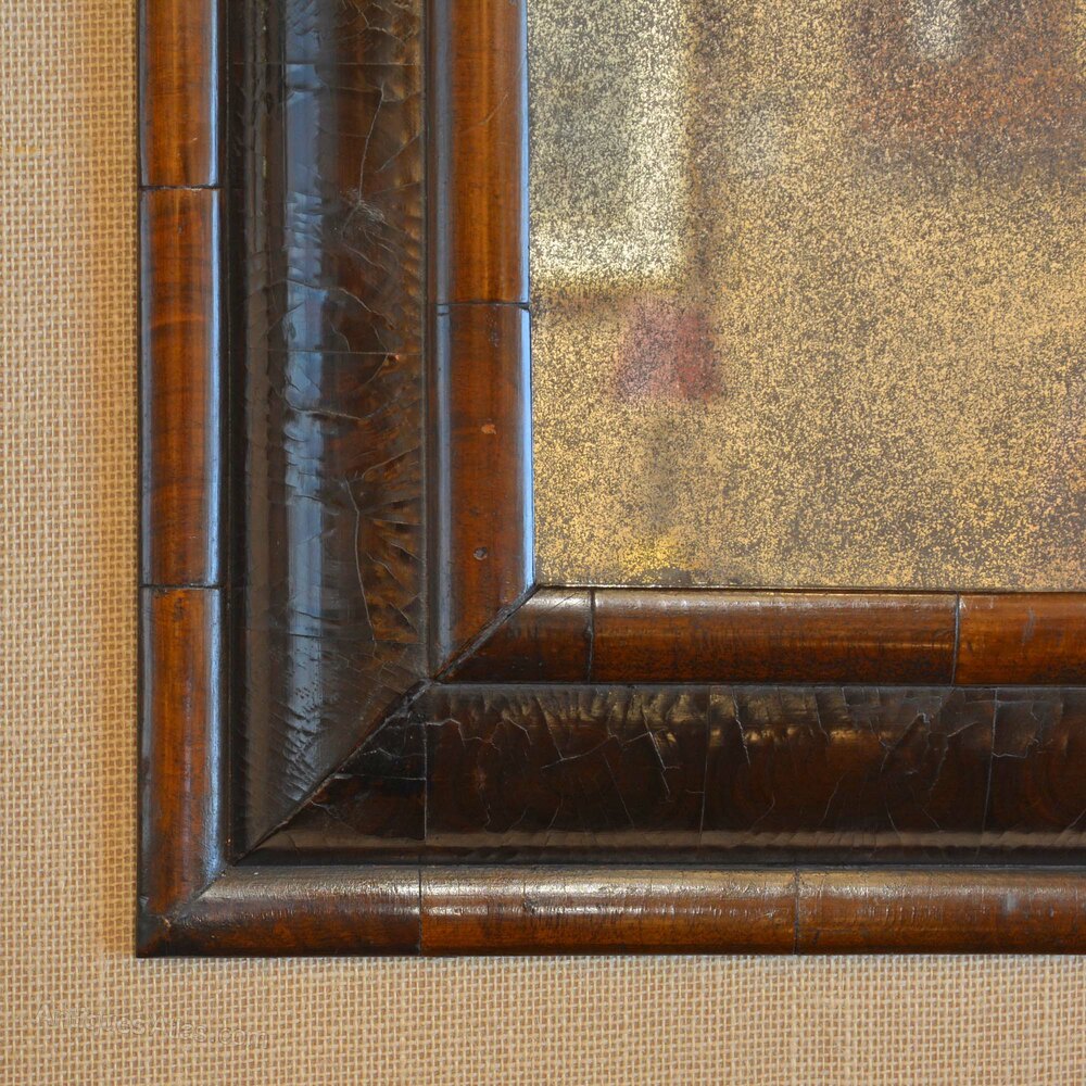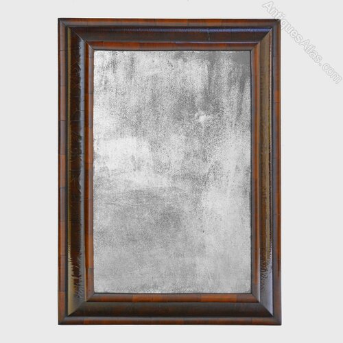 Charles II laburnum cushion mirror frame of ovolo form, with well-figured laburnum oyster veneers within laburnum cross-cut mouldings. The mirror plate is of later date, but is a well aged plate.