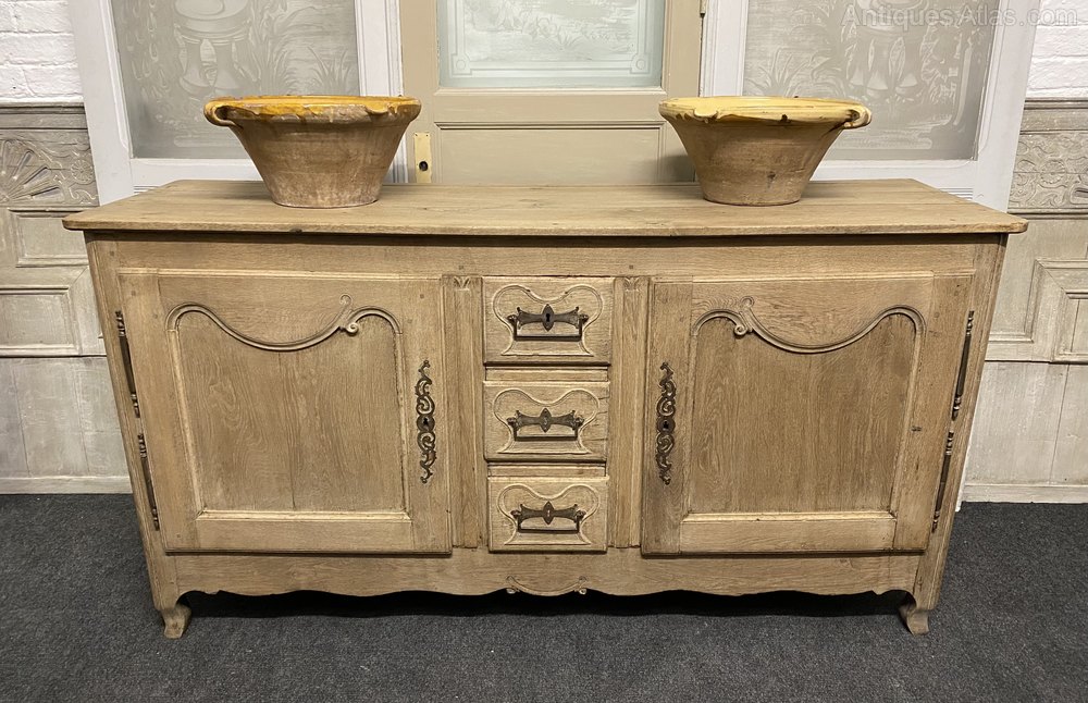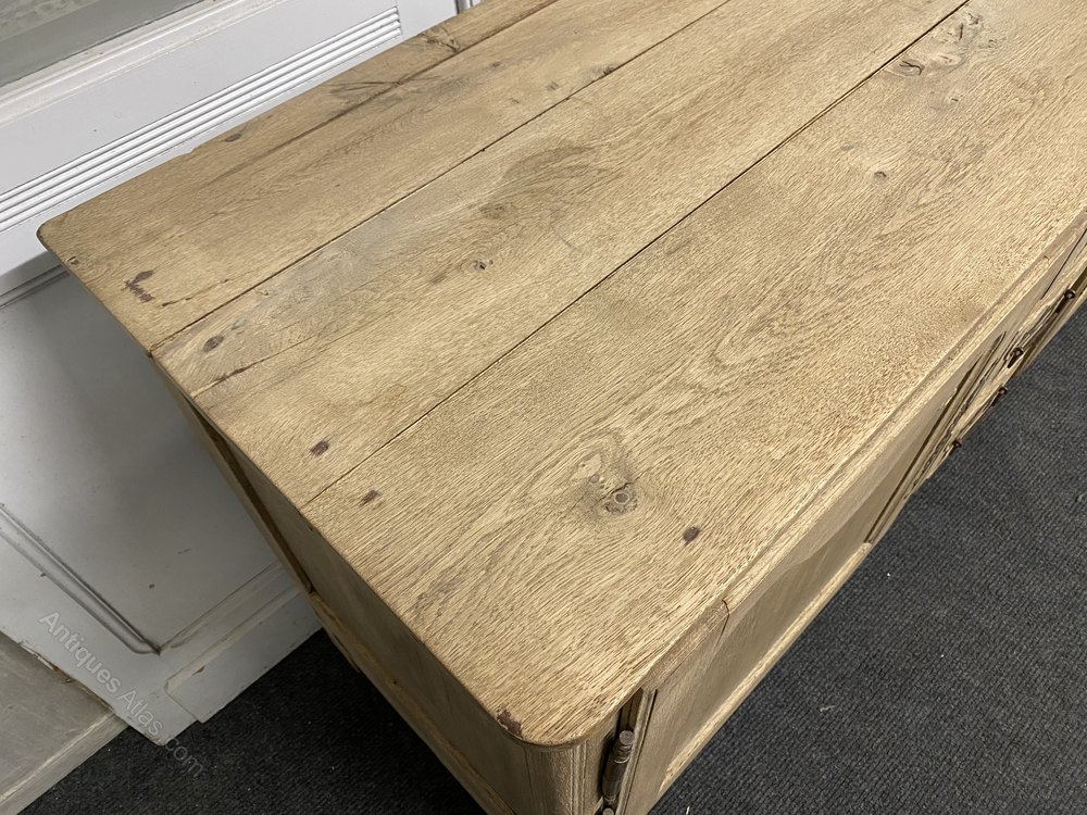 A wonderful French late 18th Century Enfilade or Sideboard. Having 2 lockable cupboard doors (keys present) and 3 drawers. Made from solid Oak and very heavy. Lots of charm and character would be wonderful in a farmhouse style kitchen.