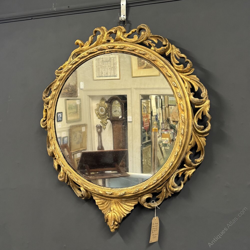 Fabulous late 18th century Italian carved giltwood round console or overmantle mirror with lovely old mercury glass too, circa 1780.